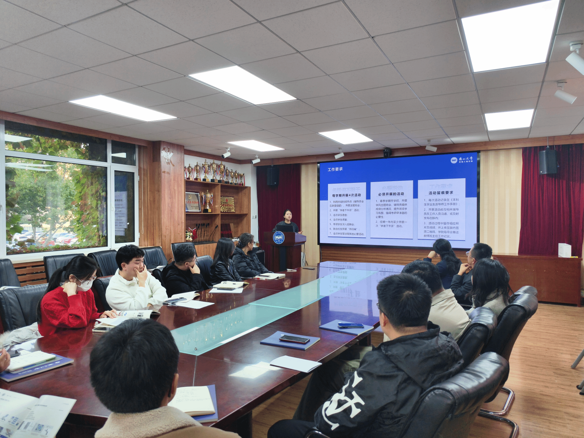 学生工作办公室辅导员陈嘉硕围绕班主任工作的具体职责与要求进行了详细说明,从思想理论教育和价值引领、班风学风建设、学生日常事务管理、心理健康教育等多个维度,梳理了班主任的工作重点和要求。