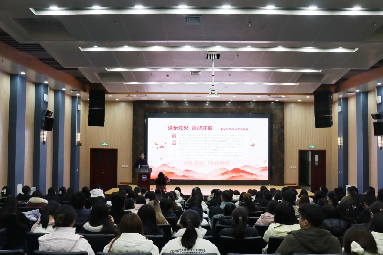 以专家讲座小故事传递精神伟力大能量。外国语学院党委积极整合馆校优质资源,邀请秦皇岛市玻璃博物馆副馆长陈厉辞以滦东抗战与英烈人物为题讲座。讲座中,陈馆长聚焦滦东抗战核心历史,生动解读冀东抗日根据地斗争故事,深情讲述革命英雄的热血事迹。通过大量的史实资料,引导学生从英烈事迹中汲取精神养分,进一步厚植爱国情怀,传承红色基因。讲座现场,学生们认真记录、踊跃提问,李同学激动地说“第一次知道秦皇岛有这么多本土英烈,他们的故事比课本更动人,也让我明白爱国不是口号,而是做好每一件小事的责任。”