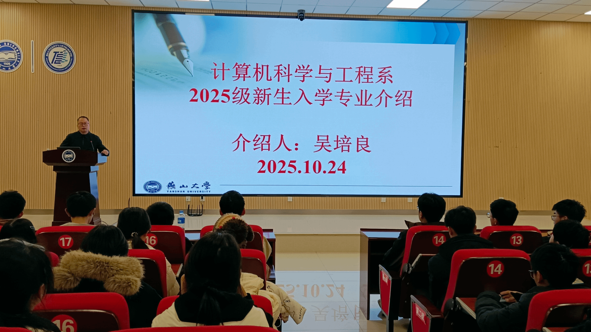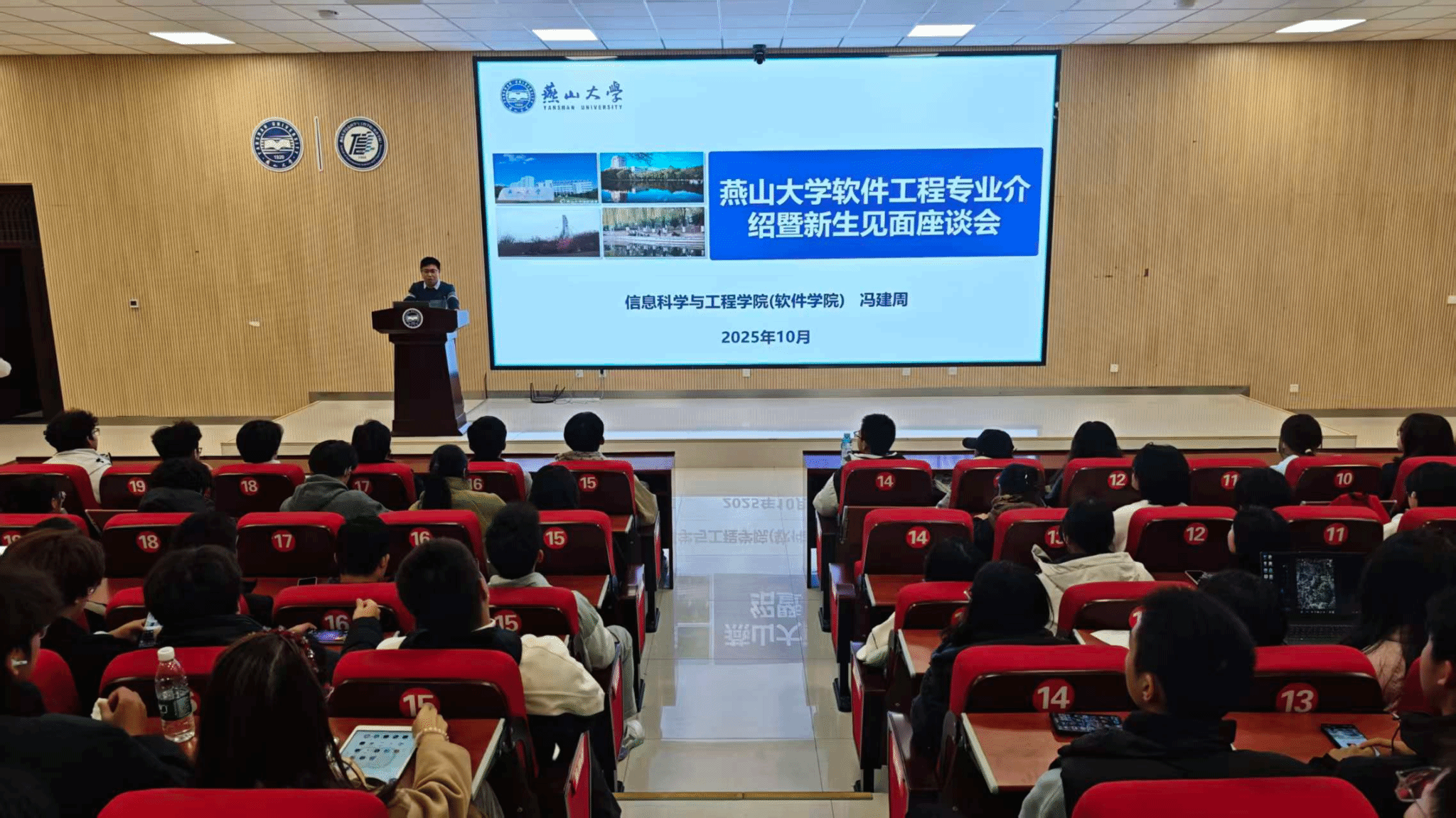 为帮助2025级新生洞悉专业前沿、规划学业未来,燕山大学信息科学与工程学院(软件学院)于2025年10月下旬在西校区信息馆2号楼行知报告厅成功举办了计算机科学与技术、软件工程两场专业介绍会暨新生见面座谈会。系列活动共吸引师生300余人参加,为新生们带来了一场深刻而富有启迪的专业启蒙。