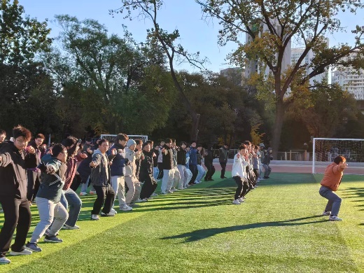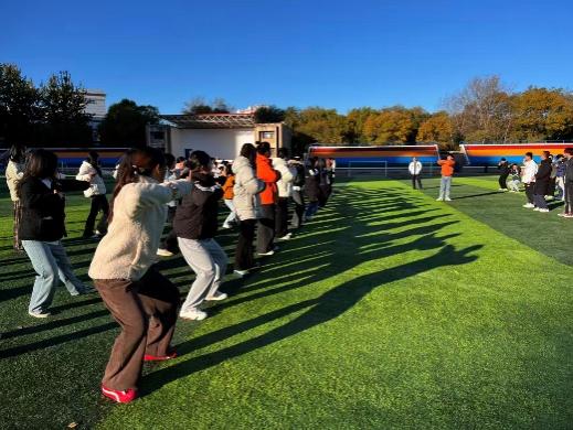八段锦的动作刚柔并济,学子们进行特色活动的身影与天际线融为一体,呼出的白气仿佛是与朝阳的对话,每一步都踏响了生命的鼓点。