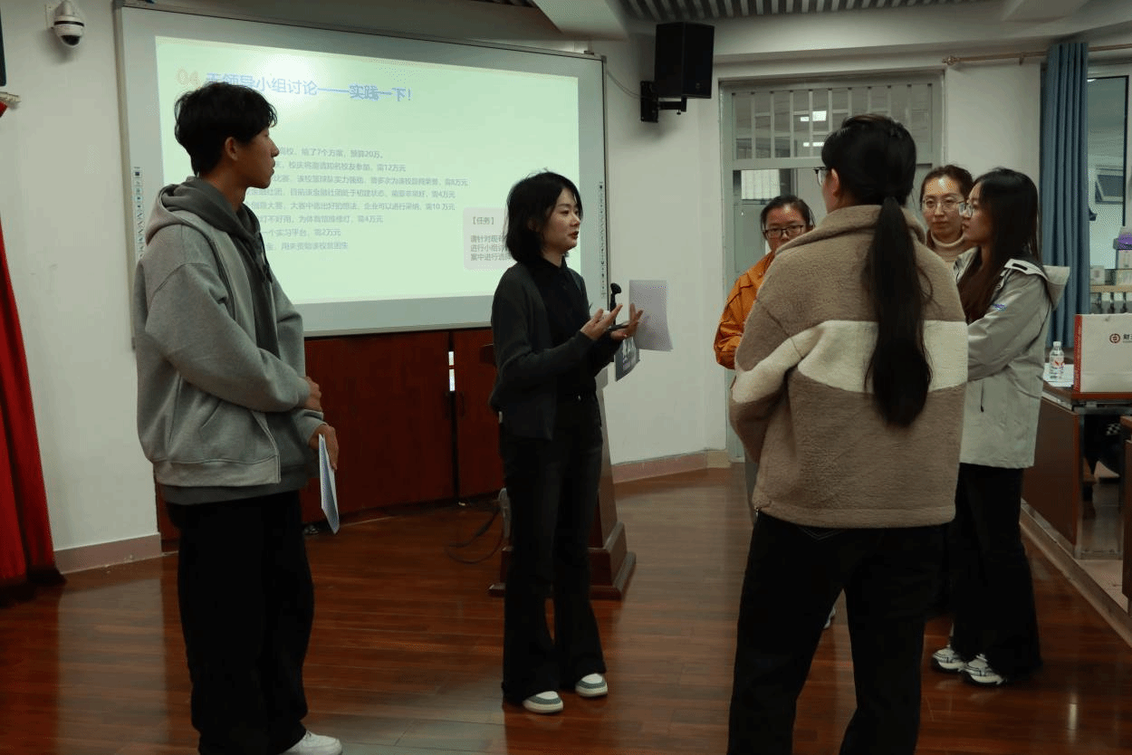 理论讲解结束后,活动进入“沉浸式面试体验”环节。同学们随机分组,模拟真实面试场景围绕议题讨论,杜翔云老师全程观察并针对大家的角色发挥、观点表达等进行实时点评指导。小组成员积极参与、各抒己见,在实践中感受面试氛围、锤炼技巧,切实转化理论知识。体验结束后,同学们纷纷表示,活动内容充实、针对性强,既系统学习了面试知识,也找到了自身不足,收获颇丰。
