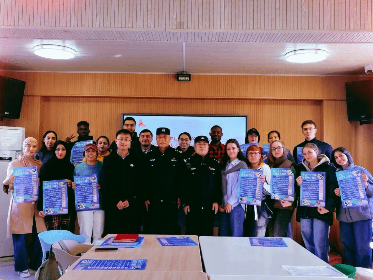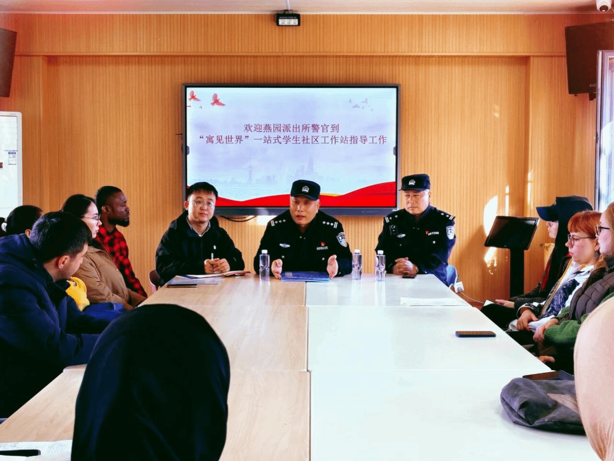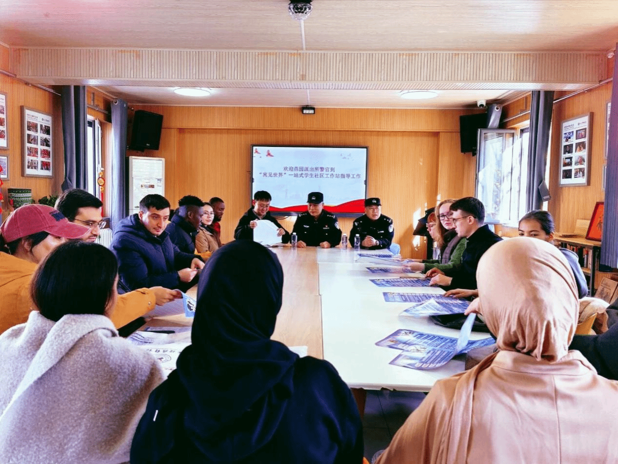 为进一步保障国际学生合法权益,提升国际学生的安全防范意识,2025年11月11日上午,燕园派出所社区民警王宝军、吕秋生到燕山大学国际教育学院就学生在校安全问题走访交流。国际教育学院正处级辅导员尚雪梅、辅导员李凯旋,以及来自俄罗斯、土库曼斯坦、阿塞拜疆、巴基斯坦等8个国家的二十余名同学共同参与了本次交流活动。