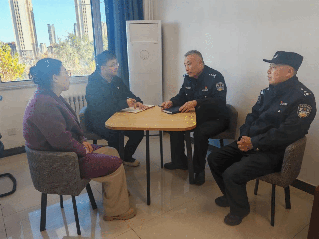 交流座谈结束后,两位民警来到国际教育学院,与正处级辅导员尚雪梅就建立健全警校联动长效机制、持续加强学生安全教育、全面保障学生合法权益等方面进行了深入座谈。