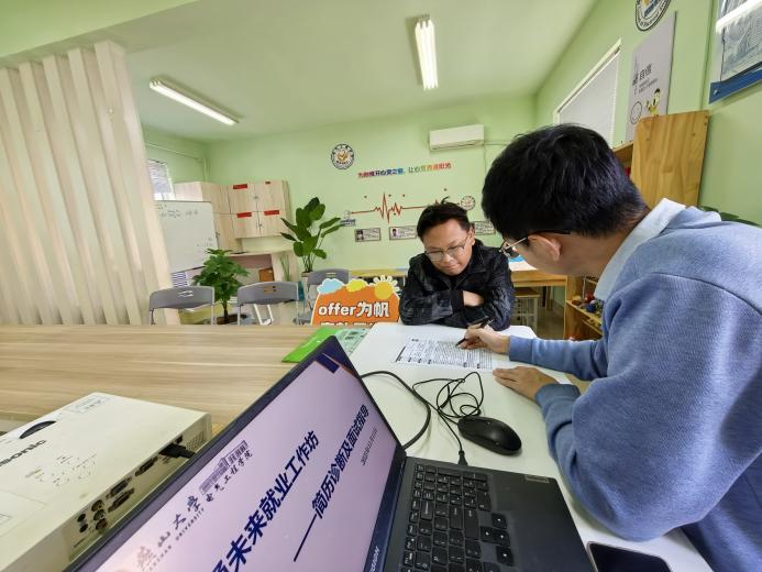活动旨在解决毕业生在求职过程中的急难愁盼问题,将就业指导服务直接送达学生身边。现场气氛热烈,交流充分。李洋老师凭借丰富的就业工作经验和专业的HR视角,与李达老师一同为到场毕业生提供了“一对一”的精细化指导。两位老师仔细审阅了每一位同学的简历,从结构布局、内容详略、重点突出、语言表述等方面提出了详尽的修改建议,帮助同学们打造更加规范、亮眼的“求职名片”。