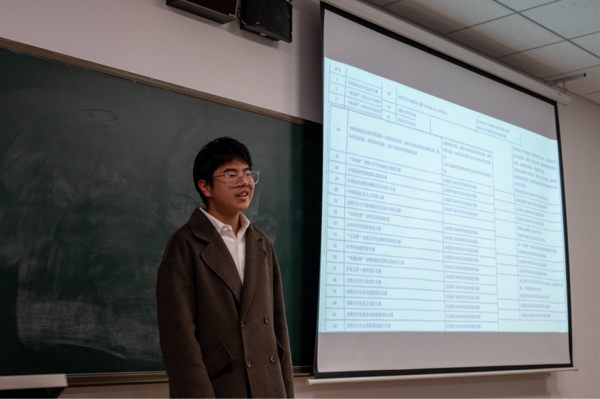 针对竞赛,对此了解颇深的郝子昆同学向大家展示了全国大学生赛事列表,向各专业的同学展示了各自适合参加的竞赛,建议新生“先从院级赛事试水,积累经验后再冲击国赛”。