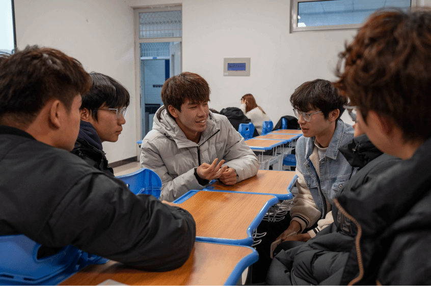 分享结束后,交流会进入答疑环节。同学们踊跃提问,提出“如何正确自主学习”“竞赛零基础该从何入手”“如何避免和解决失去学习动力”等问题,钱知渐和郝子昆与同学们围坐一圈,逐一耐心解答,现场氛围轻松愉悦。