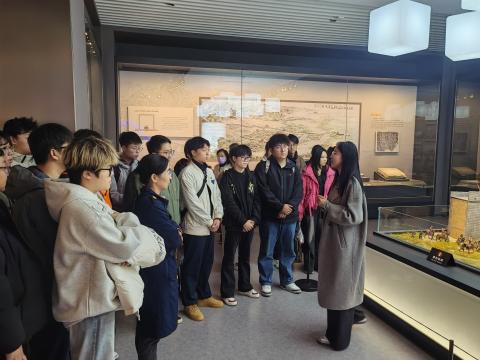 思政课结束后,全体人员在博物馆讲解员的引导下,有序参观主题展厅。通过文物实物、历史图片与多媒体影像等多种形式,大家系统学习了长城的历史沿革、建筑技艺、军事防御体系及其当代保护与传承。斑驳的城砖、详实的史料、逼真的场景再现,使学生党员们深切感受到长城作为中华民族精神象征的雄伟气魄,并在历史与现实的交融中,深刻体悟其背后厚重的文化底蕴与精神基因。