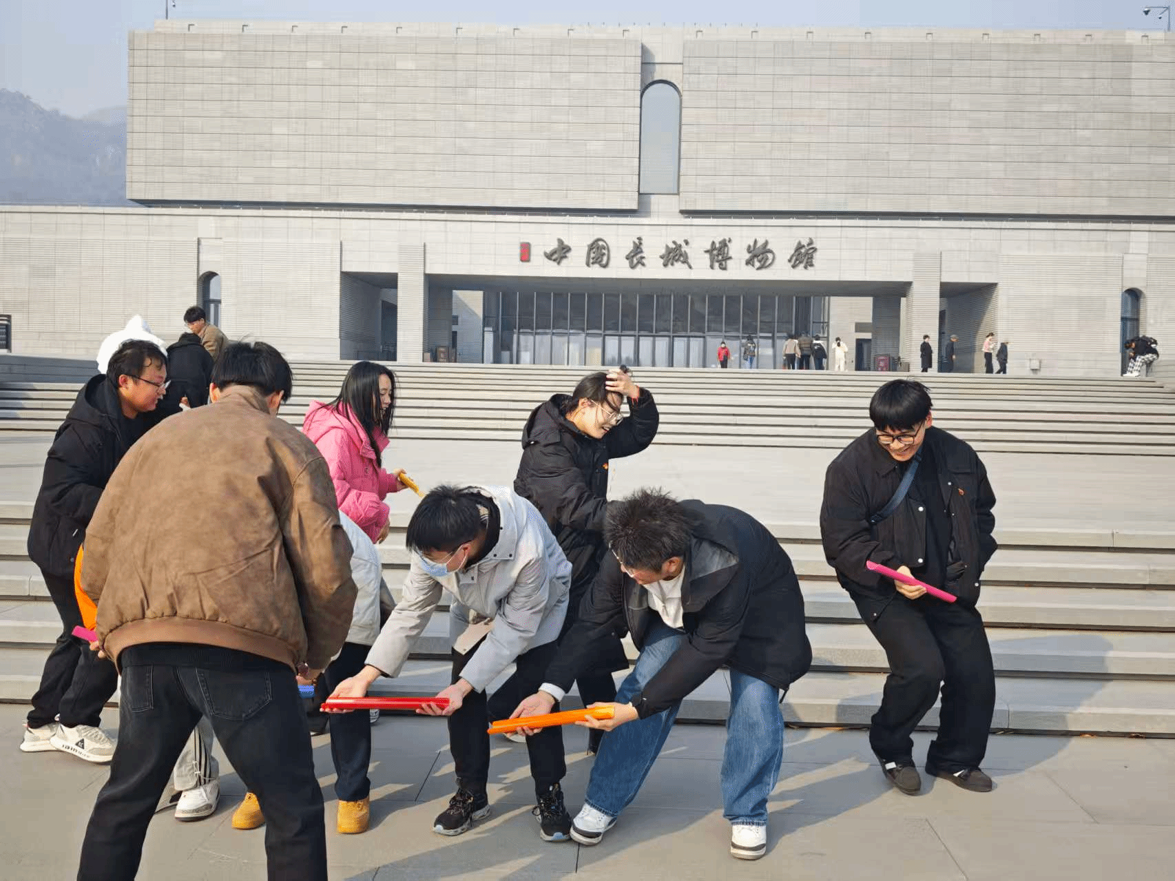 活动伊始,两校党员在博物馆广场集结,通过“长城知多少”知识快答、“同心筑城”团队协作、“珠行万里”趣味素拓等环节迅速拉近距离。现场气氛热烈,大家在轻松愉快的氛围中增进了解,凝聚共识,使“众志成城”的团队精神在实践中落地生根,为后续深入交流奠定了坚实基础。