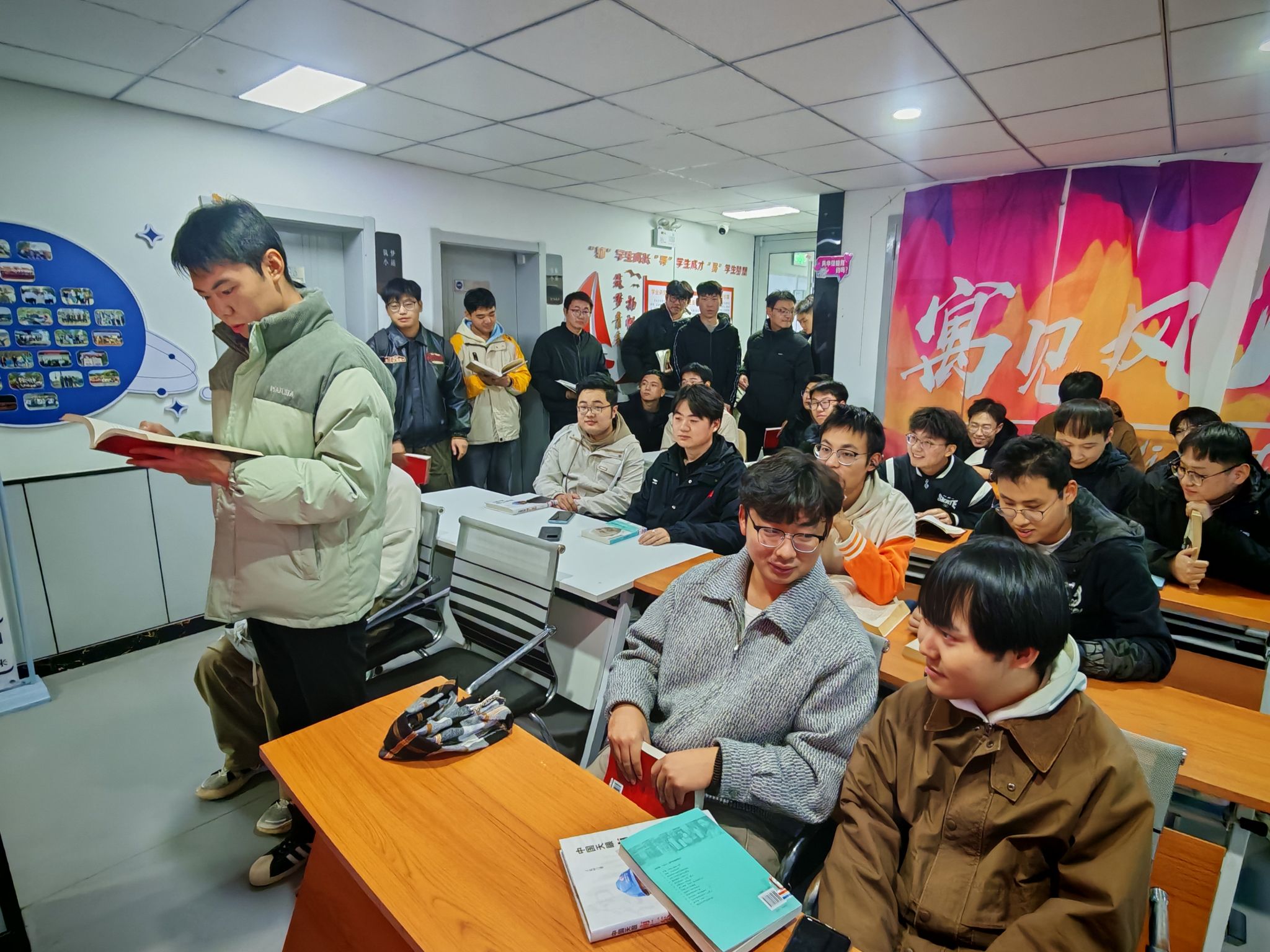 沉浸式阅读环节,同学们通过阅读展开与科学巨匠的精神对话,在静默中汲取力量。学院为推进研究生“六个一”工程,提升研究生人文素养,出资精选购买了《杨振宁传》《钱学森传》《陈景润传》《大国院士》等20余种记录中国科学巨匠和政坛伟人生平与精神的经典著作。同学们沉浸其中,在文字中追寻英雄足迹,于思考中感悟家国情怀。