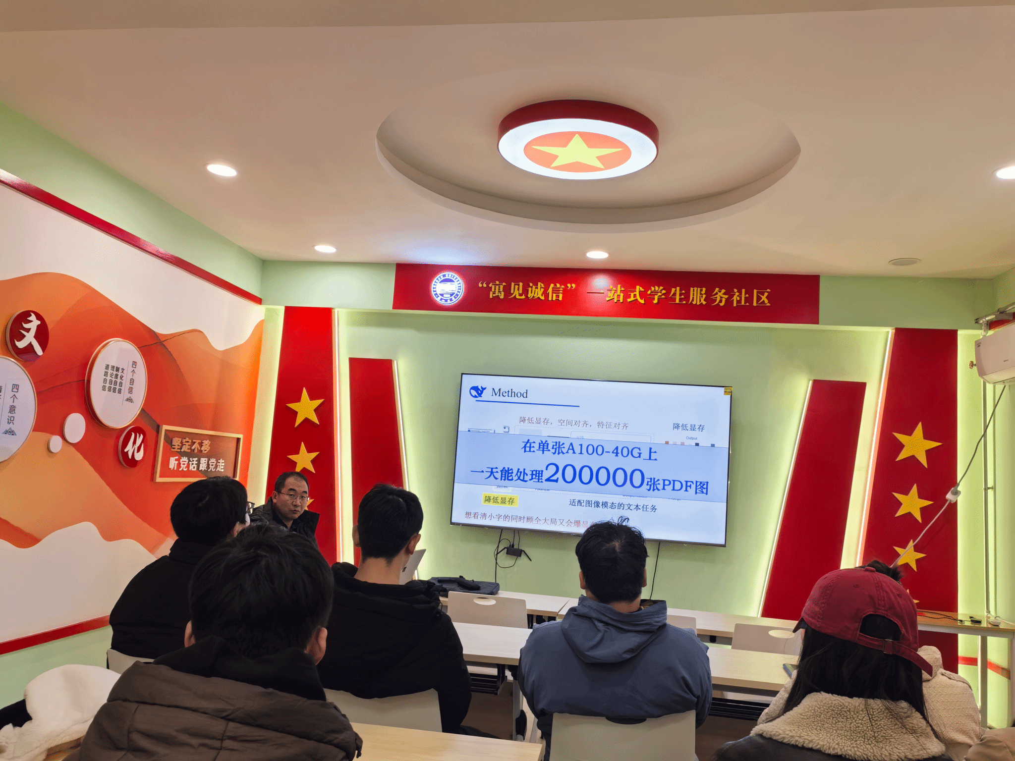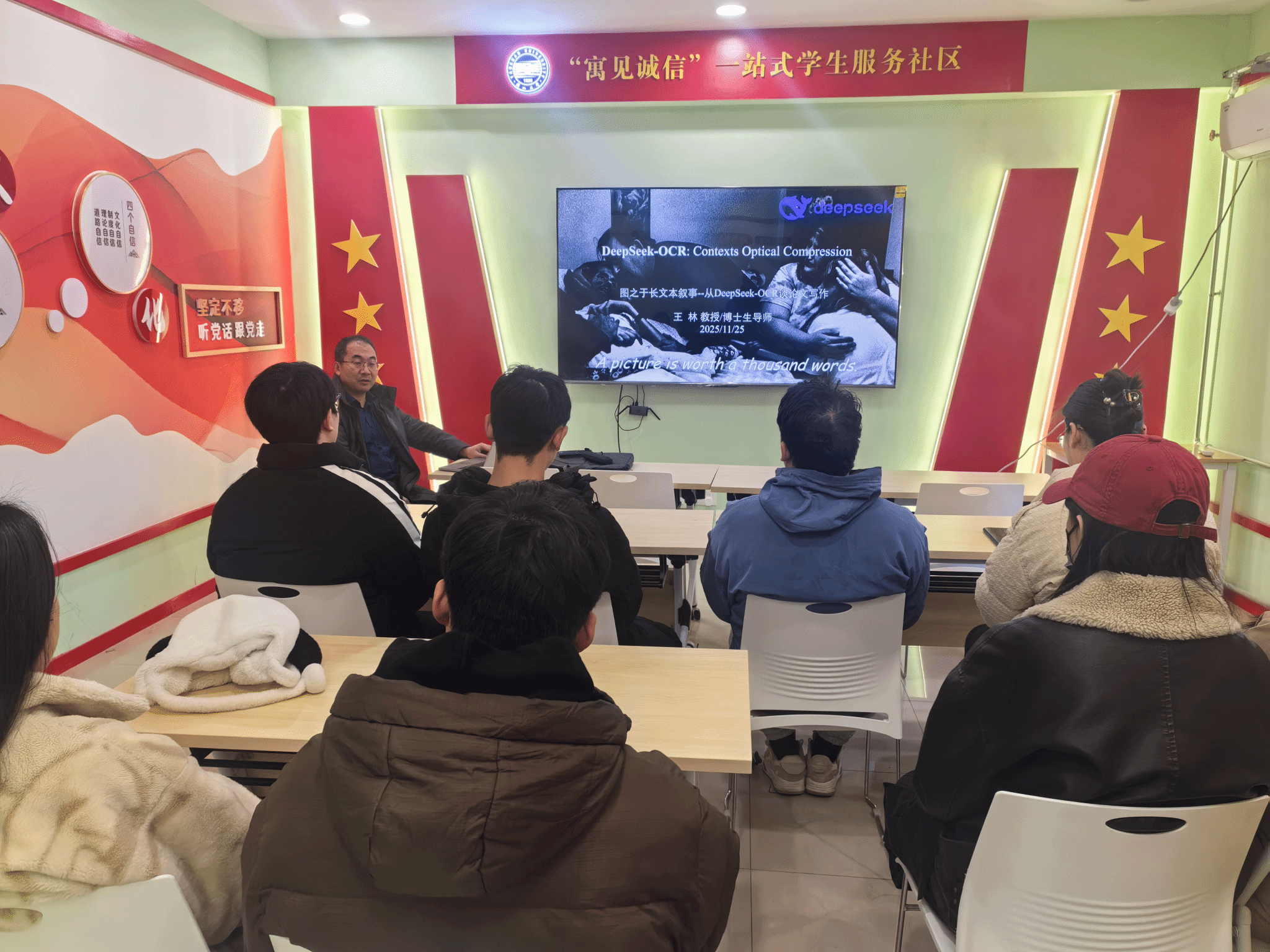 交流会开始,王老师首先从问题发现阶段工作开始讲起,以deepseek与OCR的结合场景为例,向学生说明了在科研工作初期,精准发现和准确描述“真问题”的重要性。王老师讲到,只有找到有价值的问题,接下来的研究工作才有意义,只有在论文写作中准确的说明问题,产出论文的质量才能有所保障。