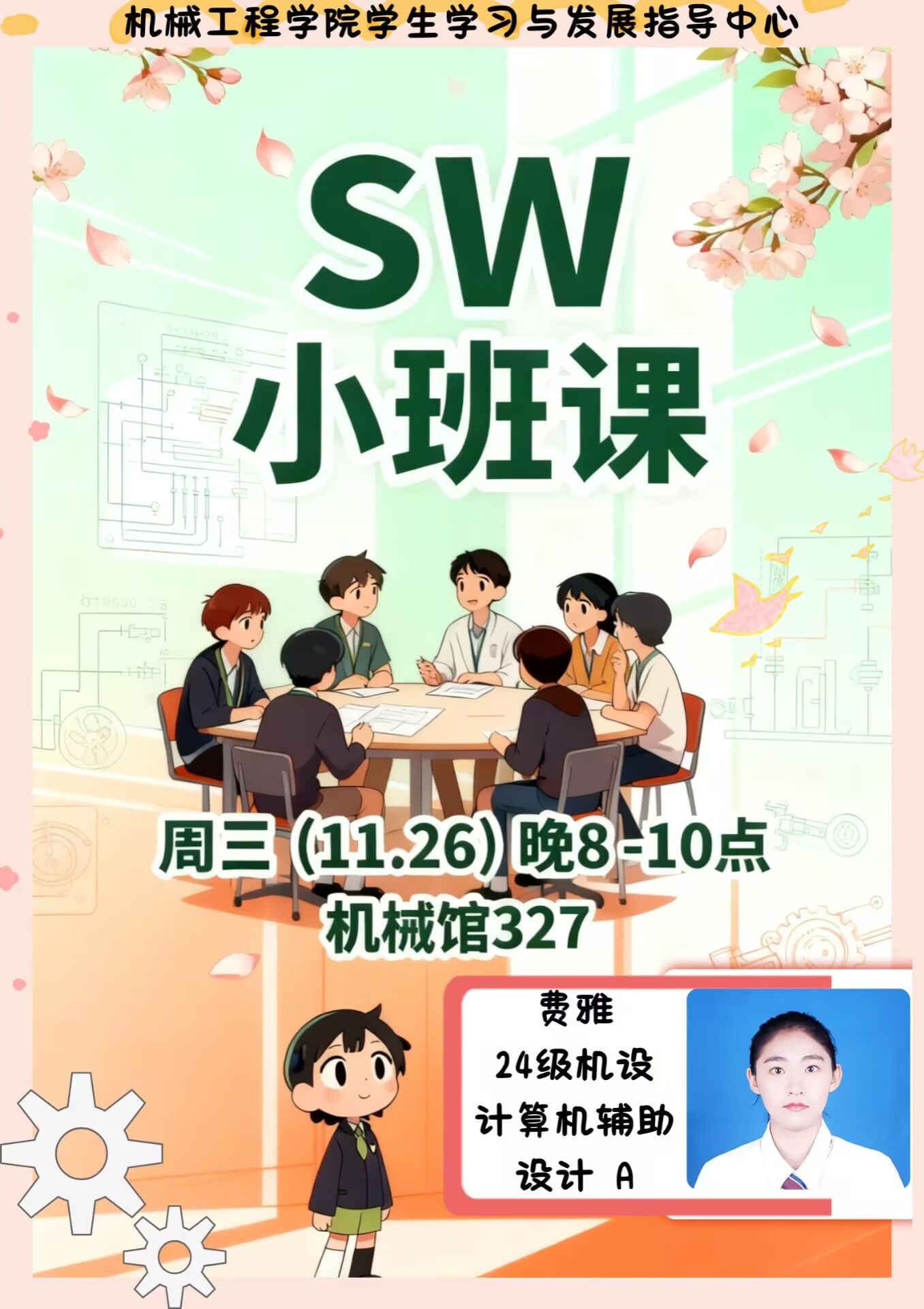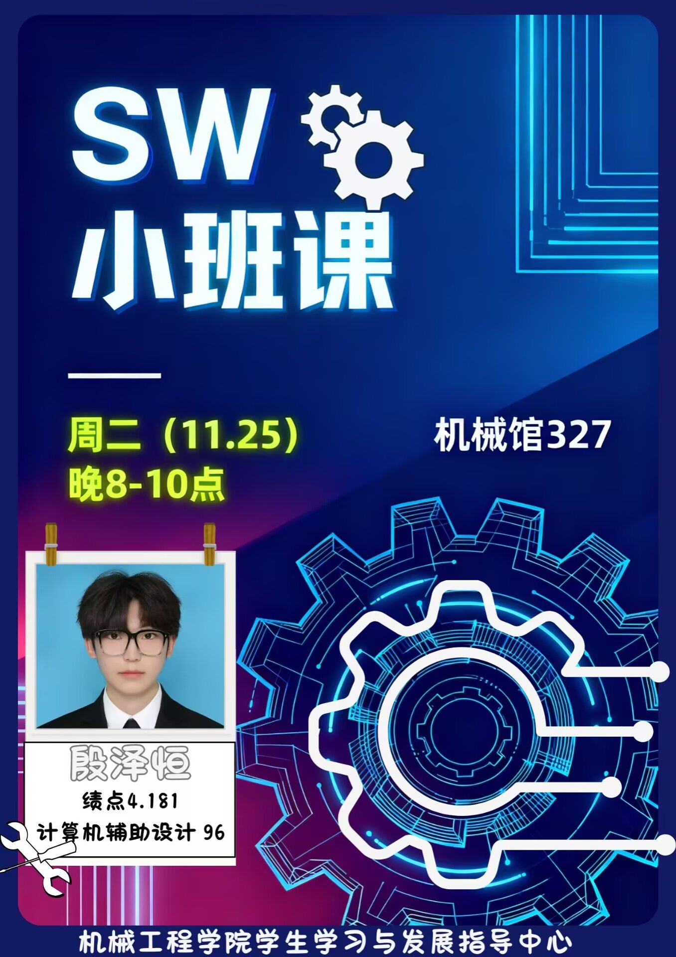 为帮助同学们更好地掌握SolidWorks软件的知识要点,提升期末备考效率,机械工程学院学生学习与发展指导中心分别于11月25日和26日晚19:00,在“寓见风华”一站式学生社区和机械馆327邀请殷泽恒同学和费雅同学作为主讲嘉宾成功举办了“风华启航计划”SW小班课的专场辅导活动。