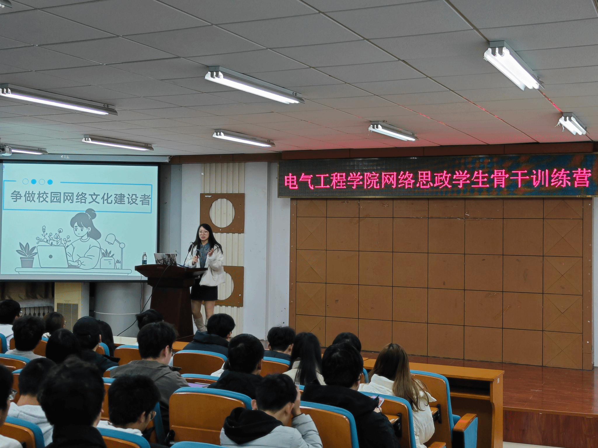 为进一步提升学生骨干的网络素养与媒介责任意识,推动校园网络文化健康有序发展,11月26-27日,电气工程学院组织“争做校园网络文化建设者”网络思政学生骨干训练营。本次训练营面向全院学生新闻宣传骨干及网络思政工作团队成员,由学院辅导员赵雨桐主持,邀请河北省冀青新媒体中心指导教师史亦轩主讲,引导学生从“被动传声”转向“主动建设”,共同塑造清朗、温暖、可信的网络形象。