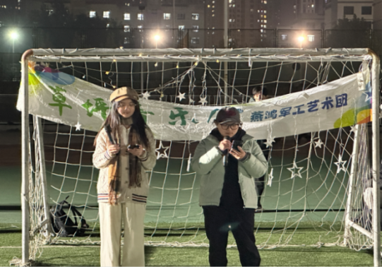 “艺起舞动”活动同样精彩绝伦。活动以“人人可参与、人人是主角”为理念,精心编排多支融合流行节奏的广场舞,动作设计兼顾趣味性与健身性。当音乐响起,领舞同学率先登场,无论是课后放松,还是专程前来的同学们纷纷加入,真正实现“零门槛、全开放、共参与”。本学期活动创新实施“运动+娱乐”模式,与校学生会“夜跑计划”深度联动,以活力热舞作为夜跑序章,既实现科学热身,又拓展参与群体,形成“舞动-奔跑-互动”的运动链。