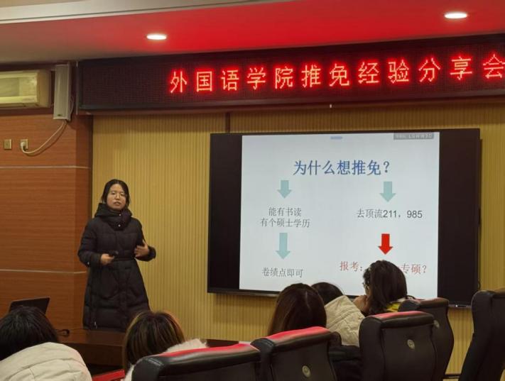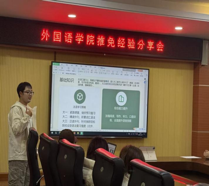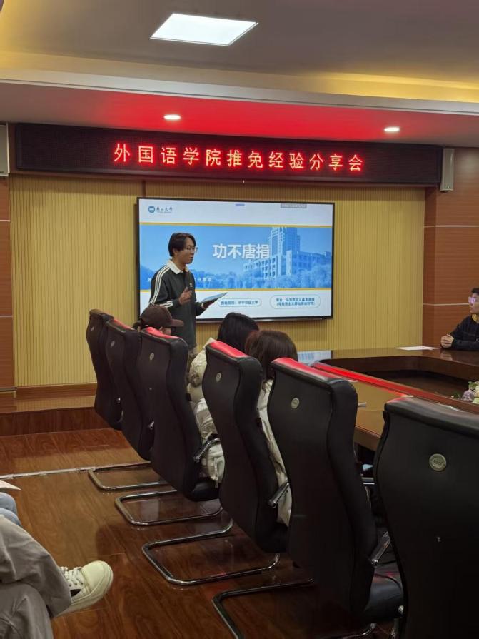 此次推免经验分享会的成功举办,为外国语学院学子搭建了一个高效的交流平台,不仅帮助同学们全面了解了推免政策和备考技巧,更激发了大家的学习动力和学术热情。外国语学院将以此类活动为载体,持续为学生成长导航赋能,帮助学生明确发展方向,夯实专业基础,在学术道路上稳步前行。
