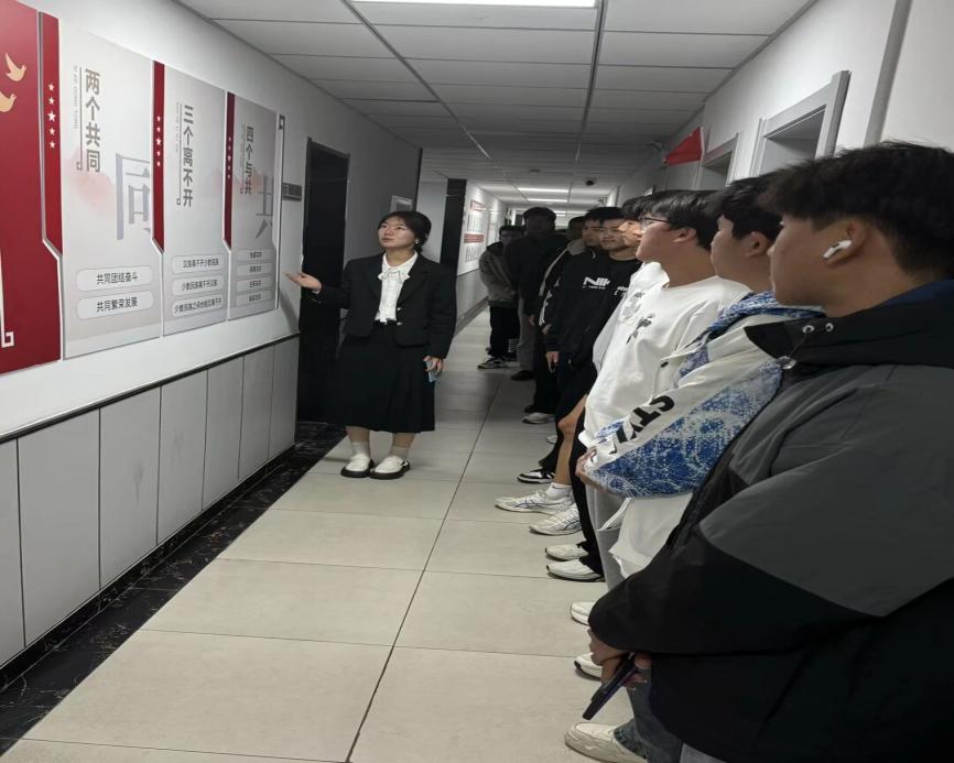 为引导学生进一步铸牢中华民族共同体意识、增强民族团结情感认同,2025年11月7日至30日,“寓见风华”一站式学生社区组织开展文化长廊讲解活动。活动由风华宣讲团成员张竟文、董玉林、张爱嘉等担任讲解员,机械学院2025级全体新生参与。