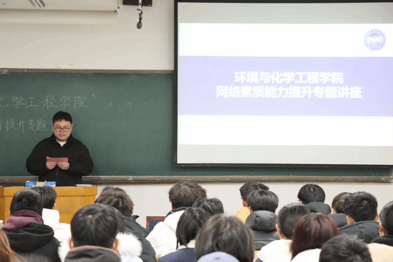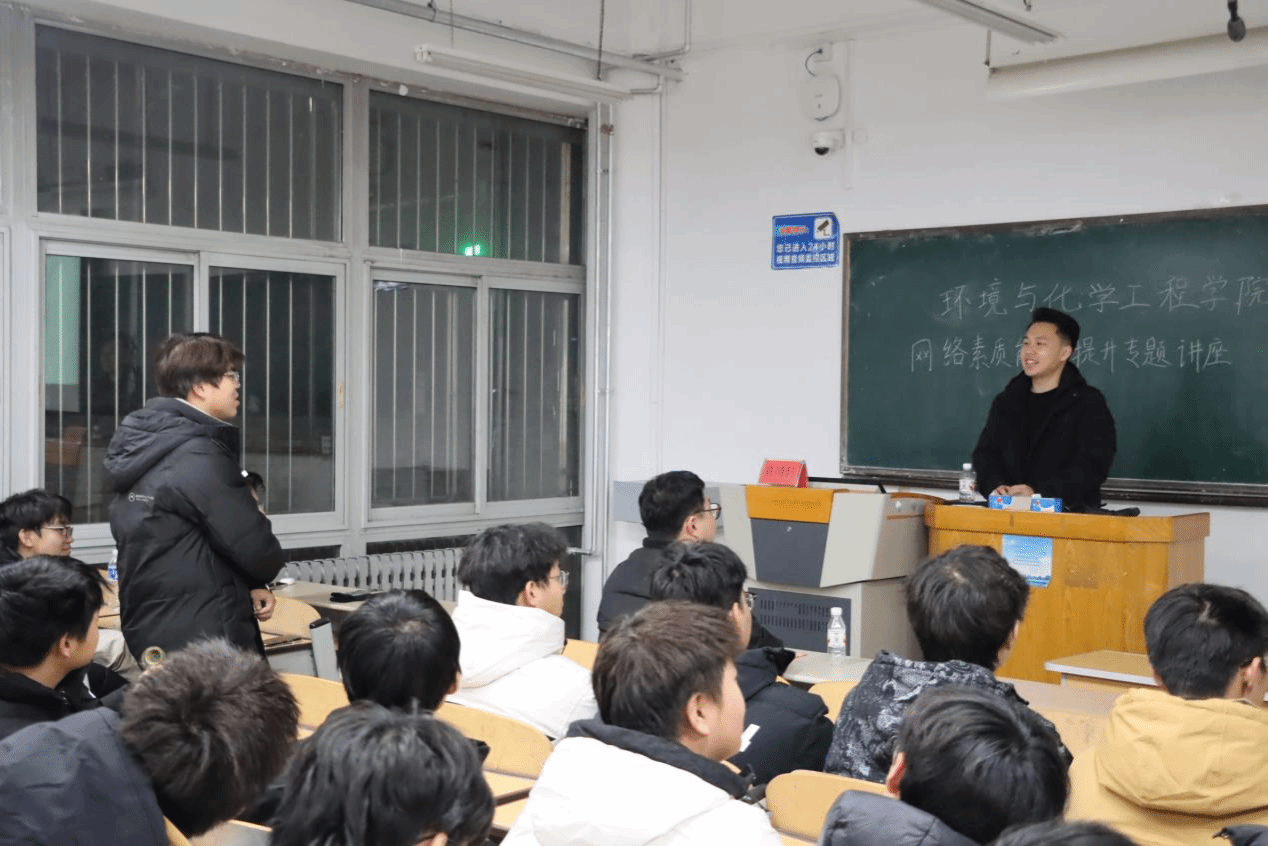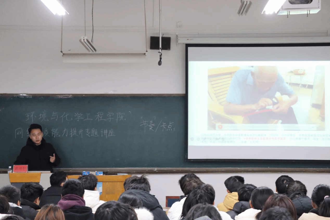 为积极适应新媒体发展潮流,全面提升学院学生宣传骨干的媒介素养与视觉叙事能力,2025年12月2日下午,环境与化学工程学院在里仁教学楼D104教室成功举办网络素质能力提升专题指导讲座。本次讲座特邀河北省高校网络思想政治工作中心辅导员、河北省冀青新媒体中心指导教师、00后摄影博主袁靖轩老师担任主讲人。讲座由学院辅导员陈奕开老师主持,学院各学生组织宣传部门成员、班级宣传、文体委员以及以及对视频创作感兴趣的百余名同学齐聚一堂,共同学习。