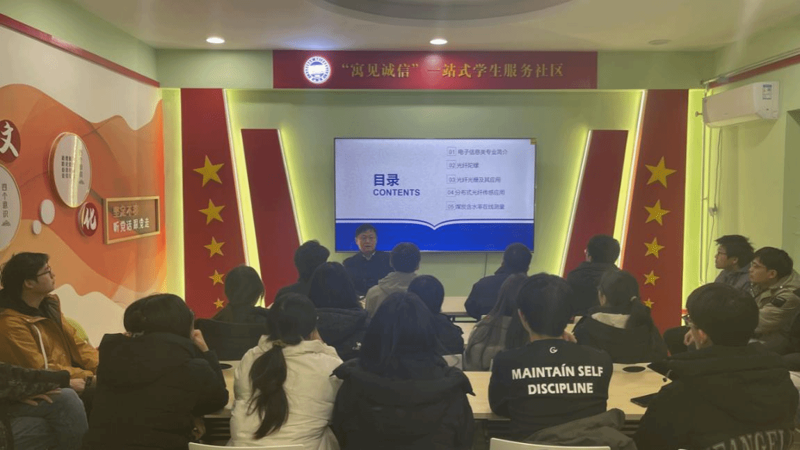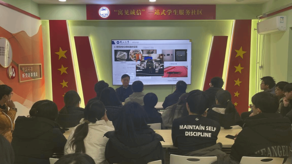 为深入落实《“党建领航,诚信修身”领导干部走进一站式社区工作方案》的要求,切实增强学生专业学习能力与激发科研热情,12月9日,信息科学与工程学院院长齐跃峰教授在“寓见诚信”一站式学生社区开展“学科前沿洞察与个人成长赋能”的主题讲座,2023级电子科学与技术的24名同学现场参与,辅导员张子超老师主持。