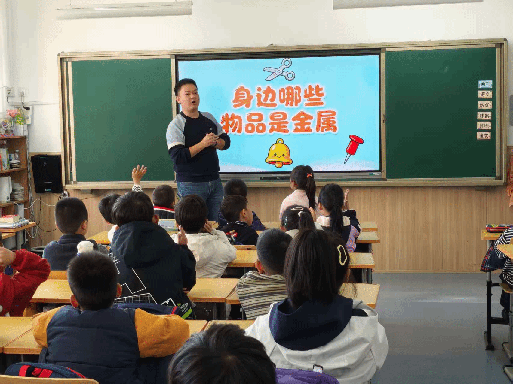 科学之旅以“寻找身边的金属朋友”开场,学生们纷纷举出钥匙、铁门、易拉罐等例子。通过对比金属勺与陶瓷碗,孩子们直观感受到金属“有光泽、坚硬、不易碎”的特性,并理解其在汽车、建筑、军工中的广泛应用,建立起科学与生活的联系。