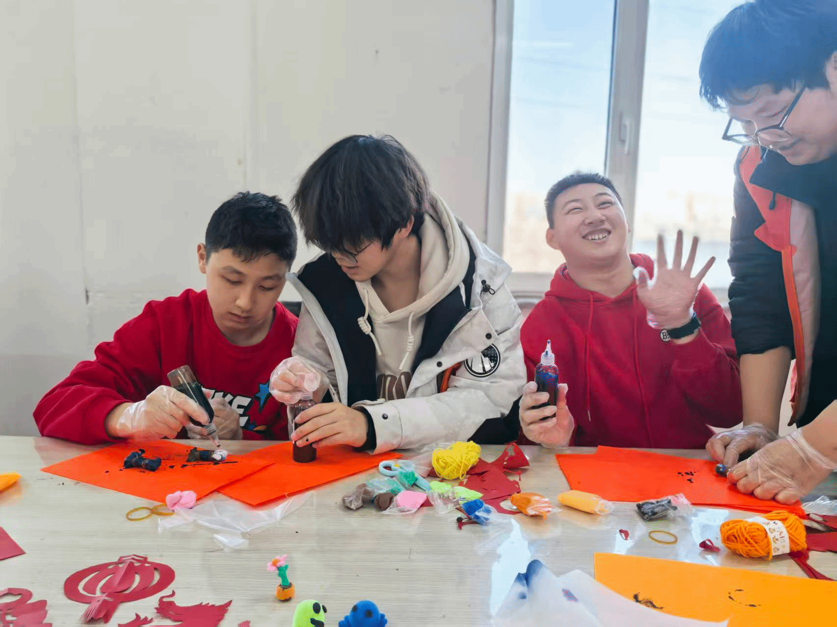 在工作人员指导下,志愿者们迅速投入服务,以耐心、细心和爱心陪伴孩子们开展捏橡皮泥、制作毛线画、剪窗花等手工活动。这些环节兼具趣味性与教育意义,有助于提升孩子们的动手能力、色彩感知力和专注力。