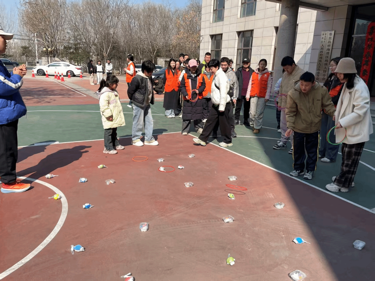 活动最后是欢乐的“趣味套圈”游戏。孩子们在鼓励下有序排队,手持套圈,瞄准目标,每一次成功的投掷都伴随着欢快的笑声和热烈的掌声。志愿者们及时送上奖品与鼓励,让孩子们在收获礼物的同时,更收获了满满的成就感与快乐。