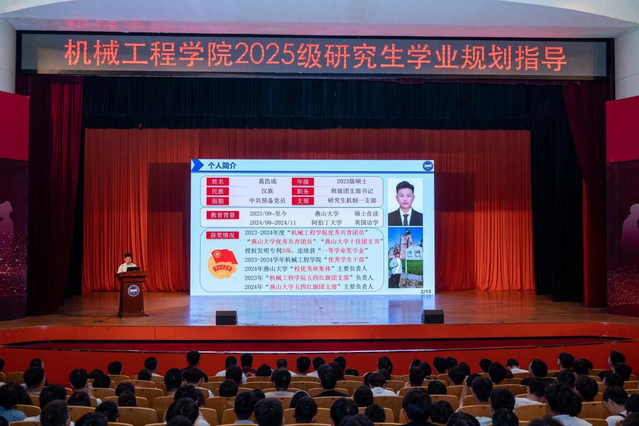 8月29日,机械工程学院在东校区大学生活动中心召开2025级研究生学业规划指导大会,会议邀请到四位高年级研究生进行经验分享,现场座无虚席,气氛热烈。