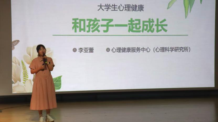 李亚蕾以“和孩子一起成长” 为主题与新生家长交流分享。她结合生动案例,用轻松真挚的语言介绍了目前大学生的心理健康现状,就学习压力、环境适应、人际关系等外在困扰,以及成年初期自我同一性构建等内在成长问题进行了分析并提出了建议。分享了家长自我关爱方法,助力家长朋友们以良好的状态陪伴孩子一起成长,成为智慧型、学习型、警惕型家长。李亚蕾还介绍了学校心理咨询服务工作情况和求助渠道。