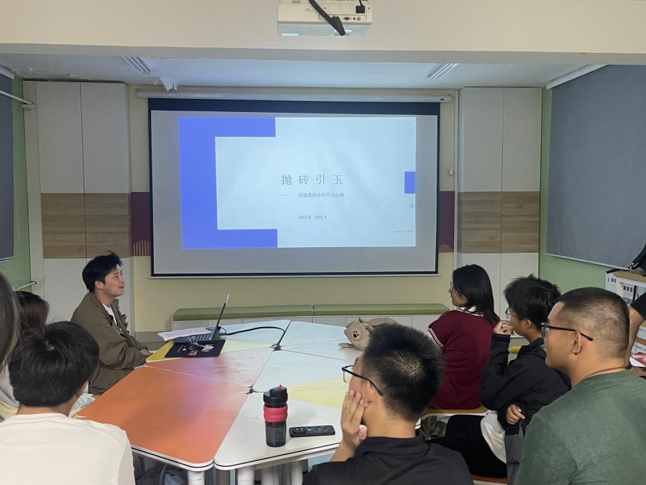 在交流环节,针对同学们提出的“如何在大二、大三阶段有效提升科研创新能力”,马逸建议主动联系专业课老师进入课题组学习,积极参与“大创”等项目。对于“阅读大量文献后仍难找到创新点”的共性难题,万中华结合自身经历,推荐“文献对比法”,鼓励与导师、师兄师姐讨论,碰撞思想火花。当被问及“如何高效管理时间,平衡科研任务与党支部活动、个人生活”,涂伟龙分享“四象限法则”,强调提高单位时间效率,重视党支部活动的意义。