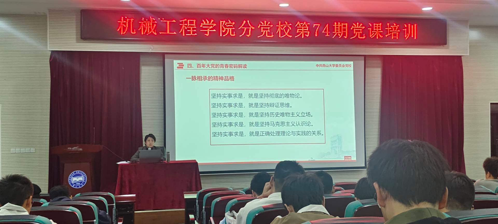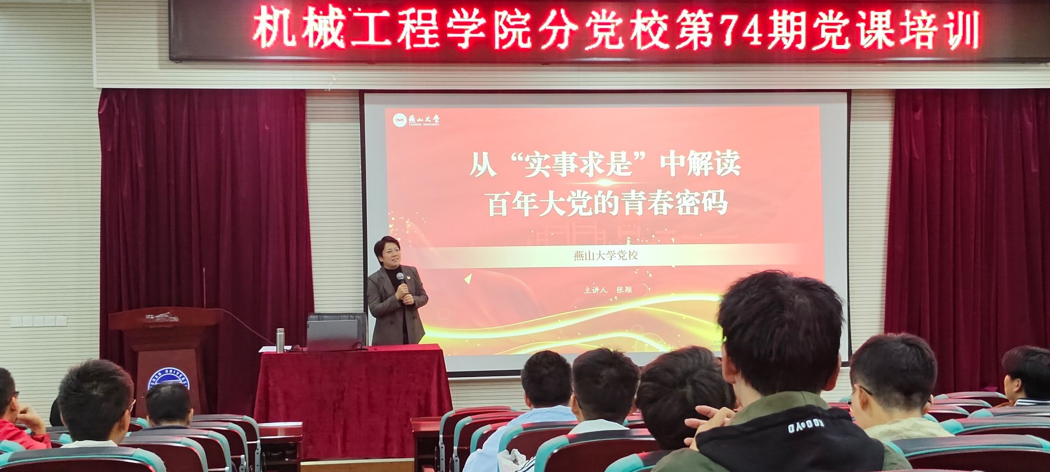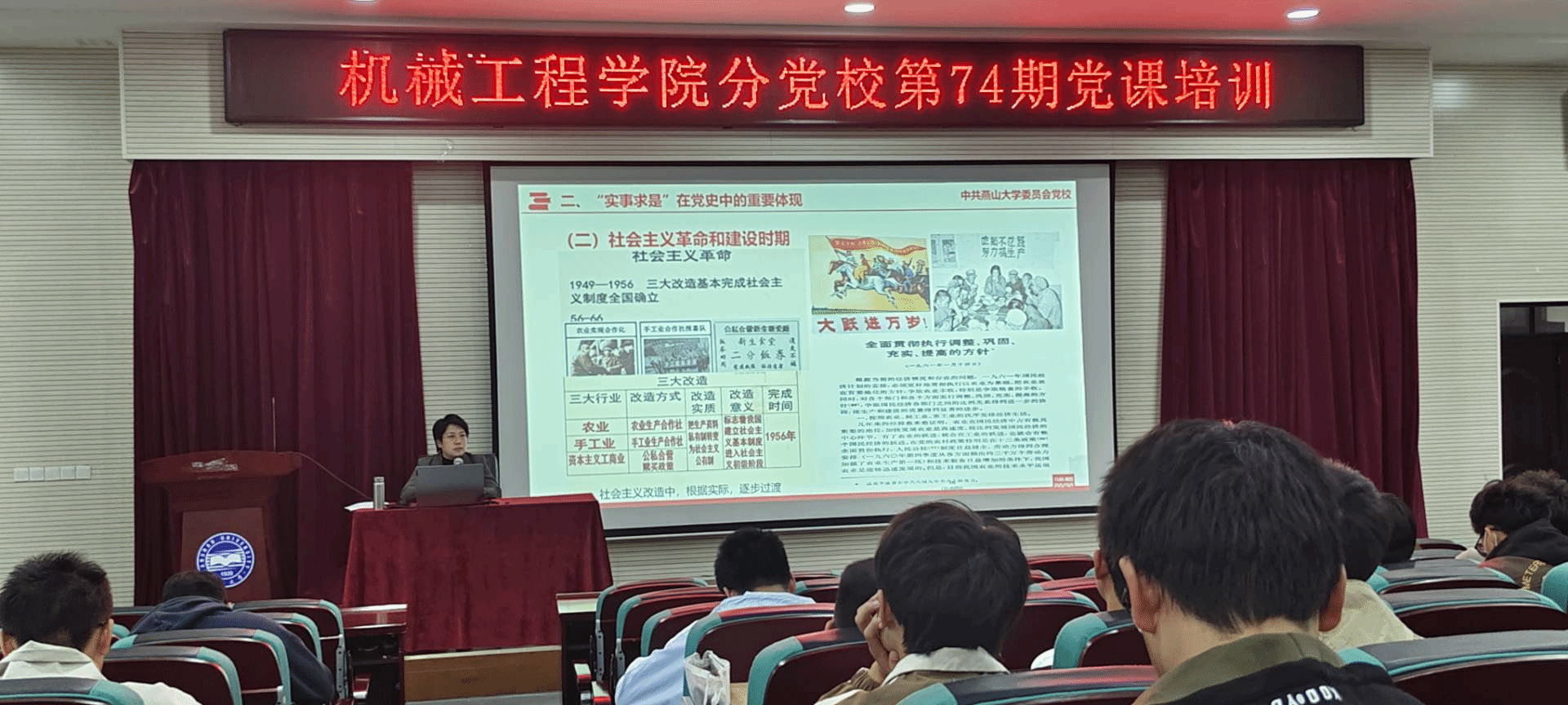 为帮助学生坚定理想信念、提升党性修养,引导学生深刻领会党的思想路线精髓,感悟百年大党永葆生机活力的内在逻辑,2025年10月9日,机械工程学院分党校于机械馆J3开展第74期发展对象党课培训。本次培训邀请到电气工程学院张颖副教授,培训由郭雨主持,学院51名发展对象参加。