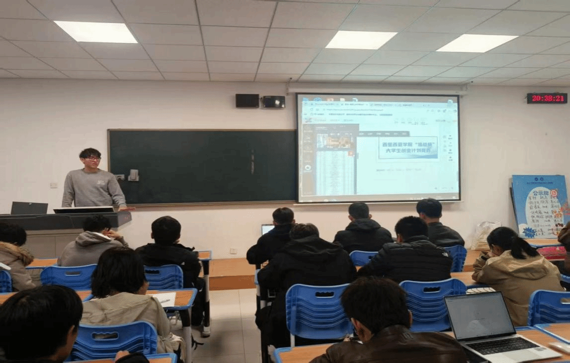 讲座伊始,主讲人何雨桁播放了一段精心挑选的视频引出话题,以提问方式引发同学们的思考,迅速抓住了全场注意力。紧接着,他通过生动有趣的案例,深入浅出地阐述了推文在当下信息传播中的重要性与影响力,点燃了大家对推文制作的热情。随后,何雨桁围绕推文的策划构思、文案撰写、排版设计、图片选择等多个维度展开详细讲解。