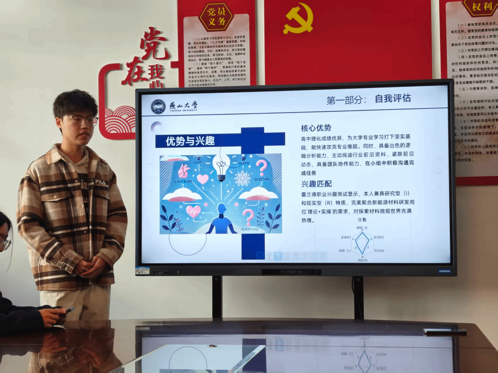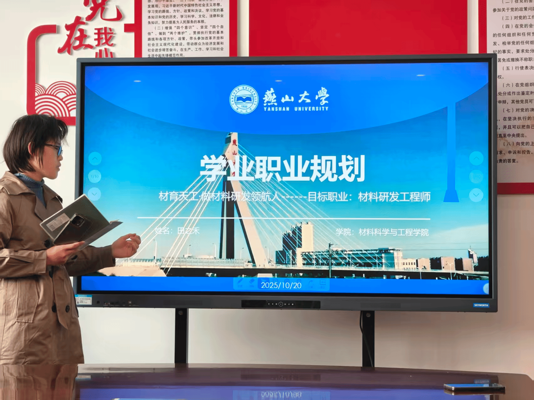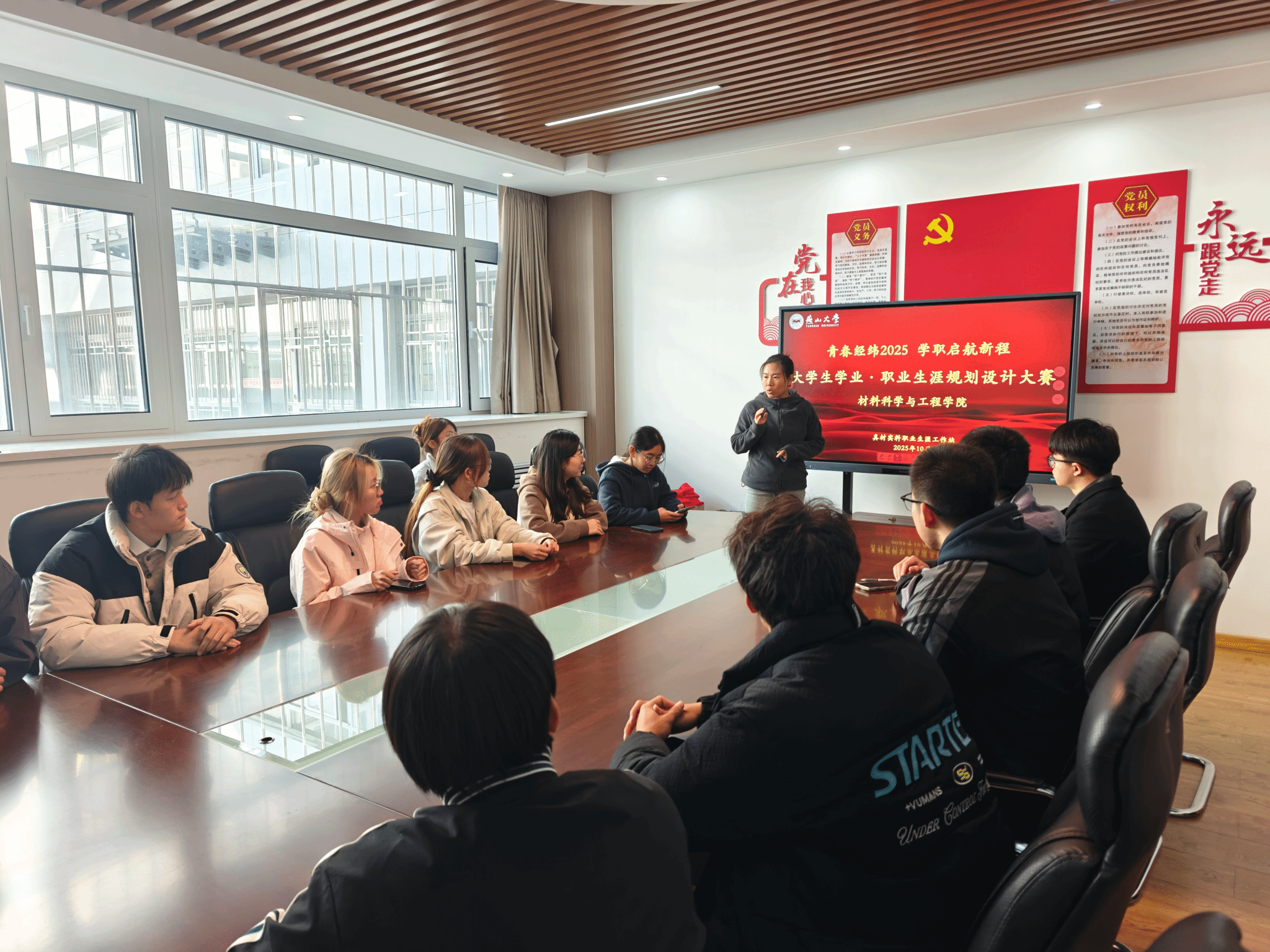 2025年10月20日,材料科学与工程学院于材料新楼119举办了“青春经纬2025·学职启航新程”大学生学业·职业生涯规划设计大赛。此次大赛由2025级新生参赛,辅导员和23级学生代表担任评委,2025级辅导员冯晶主持。