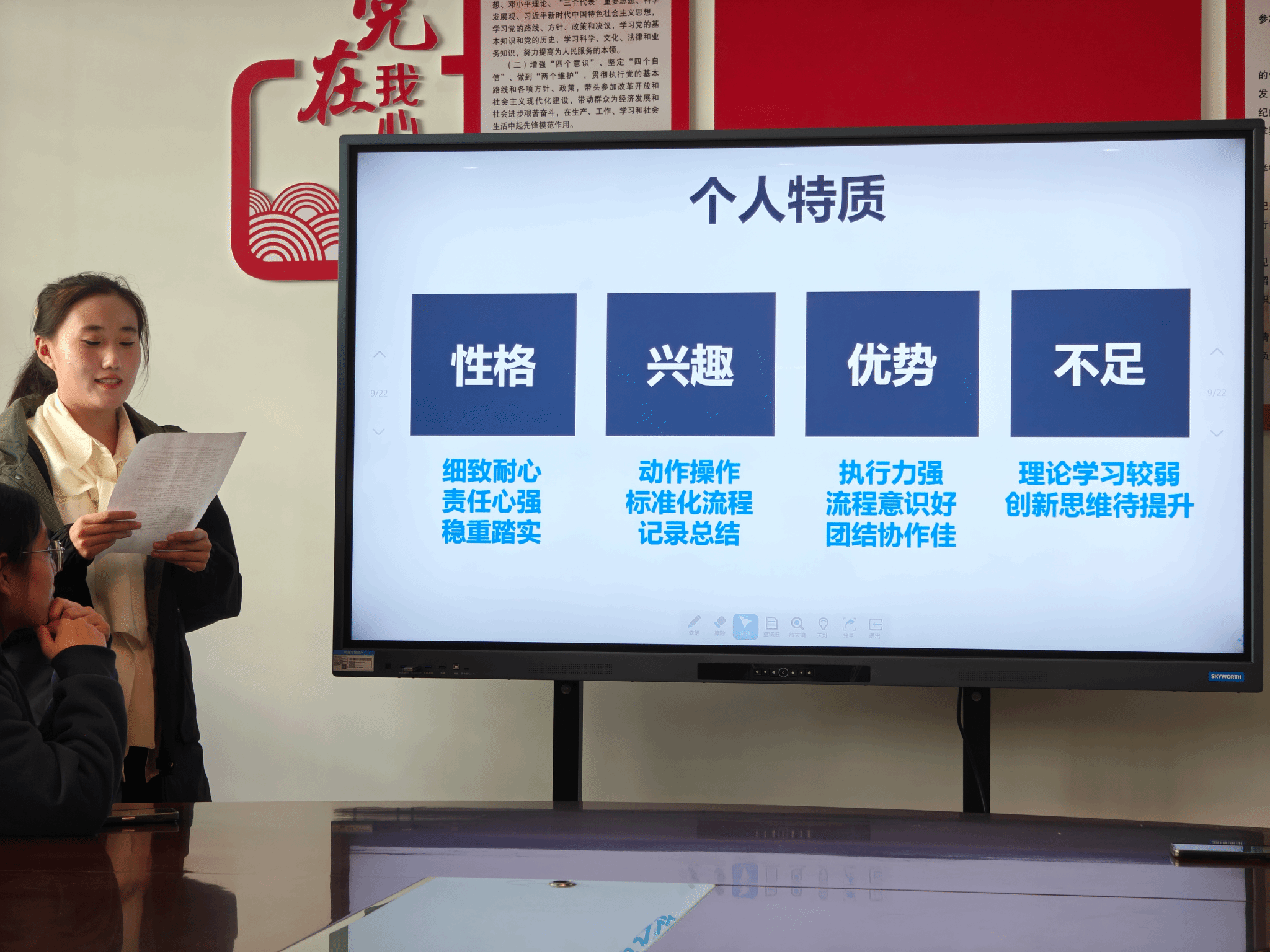 大赛伊始,辅导员冯晶详细介绍了比赛规则与评分标准,鼓励新生们充分展现自我,规划好大学四年的学业蓝图以及未来的职业生涯。随后,参赛新生依次上台,以精心设计的PPT为载体,围绕自我认知、专业定位、职业目标等核心维度展开激烈角逐,多位同学的展示令在场评委印象深刻。