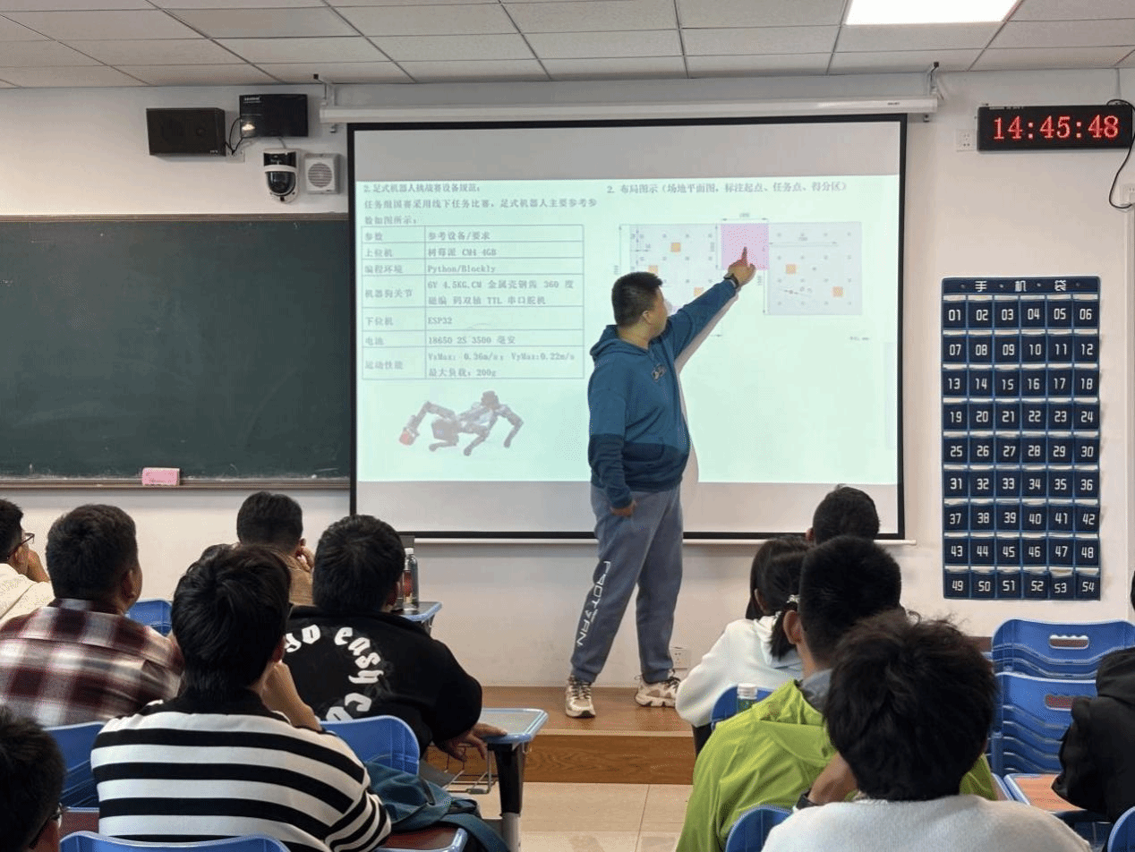 活动伊始,呼老师以“立足培养,重在参与,鼓励探索,追求卓越”为指导思想,详细介绍了全国大学生智能汽车竞赛的备赛周期、报名时间及培养安排,并针对我院不同年级学生给出分层参赛的建议。呼老师指出,智能汽车竞赛本质上是围绕车模设计与控制的探索性赛事,他还鼓励同学们在学习智能汽车设计相关知识的过程中锻炼自主学习能力。他欢迎感兴趣的同学加入备赛交流群,积极参与学习与实践,持续提升知识整合能力和团队合作水平。