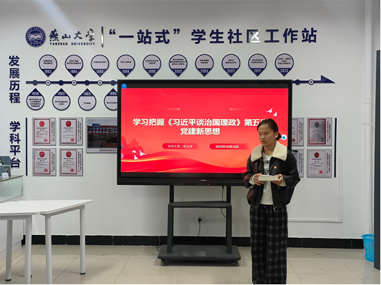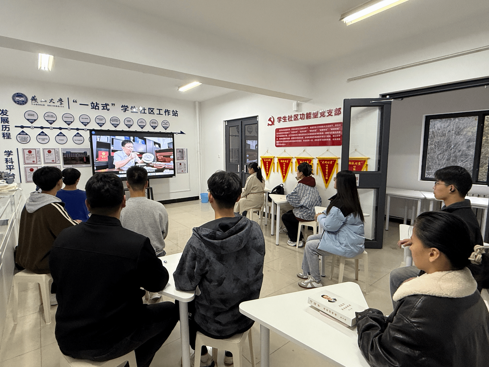 在交流分享环节,支部党员结合自身学习、科研与生活实际,畅谈学习心得与实践思考。辅导员董亮表示,作为新时代学生党员,既要深刻认识加强党的建设的极端重要性,自觉用党的创新理论武装头脑;更要立足专业特色,将理论学习成果转化为具体行动——无论是攻克学业难点、参与科研创新,还是主动服务同学、践行社会责任,都需以党员标准严格要求自己,彰显青年党员的担当。
