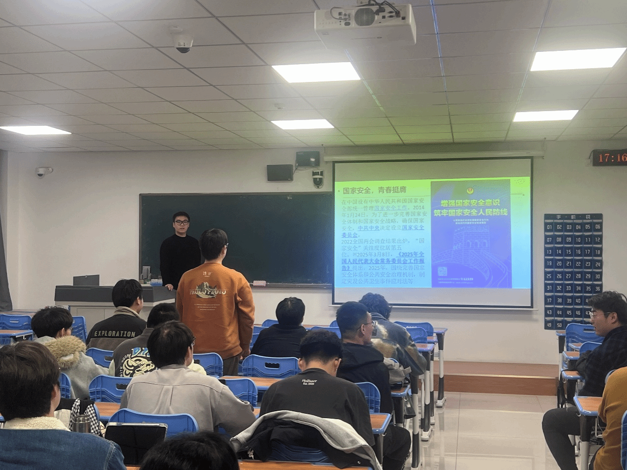 在互动环节中,同学们围绕“新时代青年如何践行国家安全责任”展开热烈讨论。部分同学结合专业知识,阐述“在学术研究中严守数据安全底线”“在社交平台积极传播国家安全正能量”等具体建议;还有同学分享身边维护安全的小事例,如提醒家人保护好身份证件、举报不明链接等,展现出扎实的安全知识储备与较强的行动意识。现场思想碰撞频繁,氛围热烈,“国家安全,人人有责”的理念在交流中不断强化,“青春挺膺,主动作为”的担当精神逐渐凝聚。