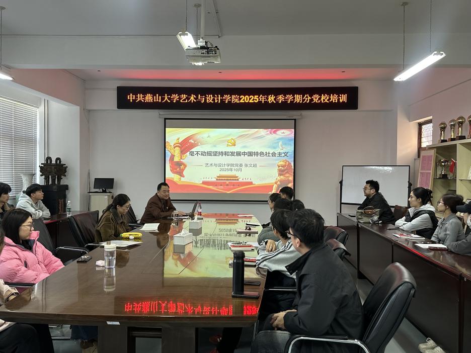 为深入学习贯彻习近平新时代中国特色社会主义思想,进一步增强青年学生的道路自信、理论自信、制度自信、文化自信,10月23日,艺术与设计学院党委书记张文超以“毫不动摇坚持和发展中国特色社会主义”为主题,为学院2025年秋季学期党员发展对象讲授专题党课。