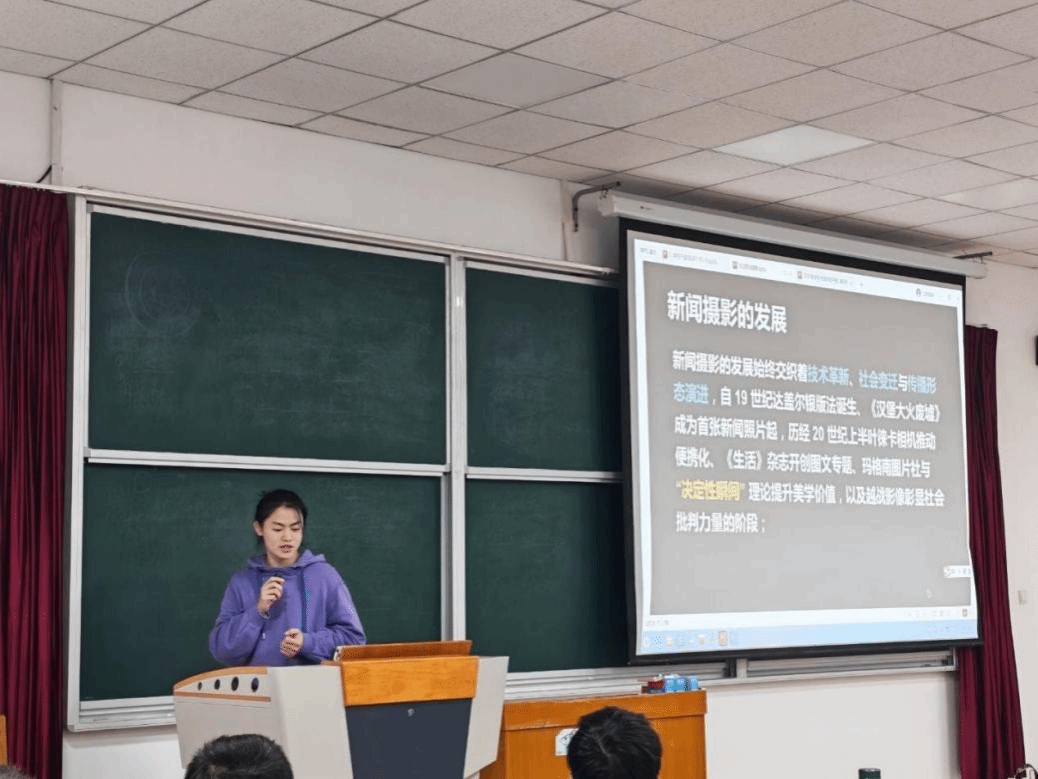 随后,李科军同学结合自身经验,围绕新闻摄影的关键要素与拍摄技巧展开分享,内容详实、贴近实际,使学生干部对如何用镜头捕捉重要瞬间、展现学院风采有了更深理解。