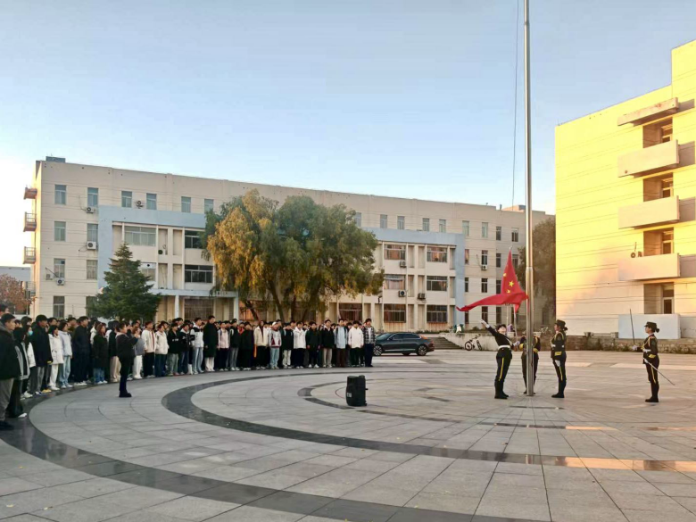 活动伊始,伴随着雄壮激昂的《义勇军进行曲》,鲜艳的五星红旗冉冉升起、迎风招展。全体师生身着整齐服装,昂首肃立,目光紧紧追随国旗,行注目礼、唱国歌,满腔的爱国之情与崇敬之意在晨光中激荡,充分展现了燕大材料学子昂扬向上的精神风貌。