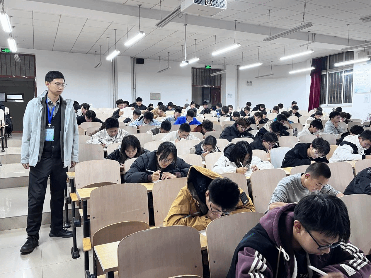 考试现场,气氛严肃而有序。与往常不同,本次模拟考试的主考由新生辅导员李达老师亲自担任。学院学习发展中心学生干部担任监考人员,现场考试秩序井然。