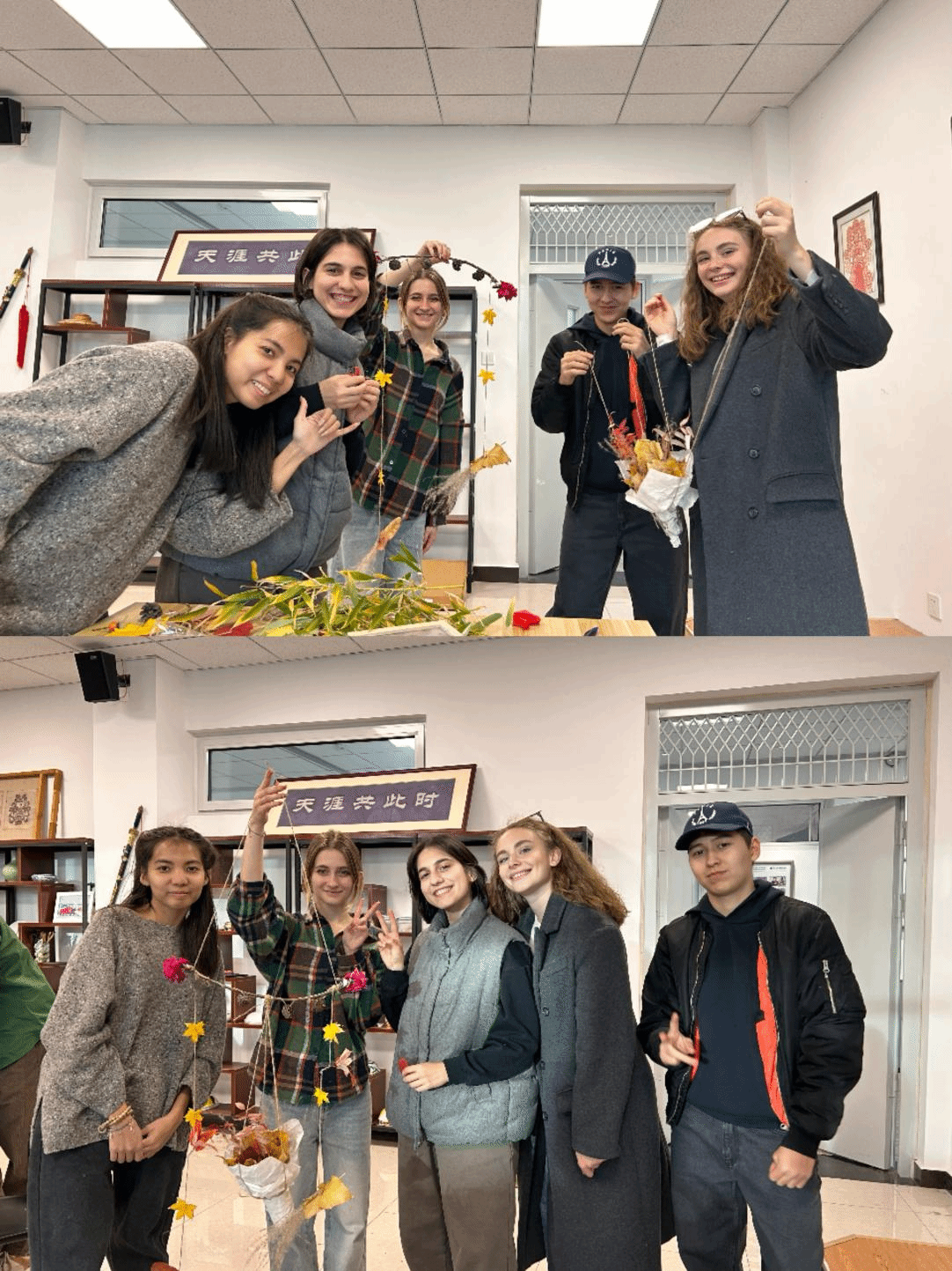 进入创作环节,教室化作充满创意的工坊。国际学生们充分发挥想象力与动手能力,将落叶修剪、拼接、粘贴,把树枝打磨、组合、造型。有的用多彩叶片拼贴成故乡风景,有的以枯枝为架制作成小巧摆件,还有的将落叶与树枝搭配,创作出具象的动物造型。每一位同学都专注投入,时而交流思路,时而相互协助,现场氛围热烈而温馨。最终,一件件充满巧思与个性的手工作品新鲜出炉,每一件都承载着国际学生对秋日的理解与对生活的热爱。