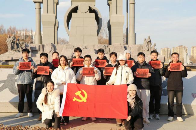 随后,党支部书记王龙涛带领全体党员来到燕山大学水压机雕塑前,带领大家重温百年燕大在科技创新领域的重大突破,鼓励大家发扬燕大优良传统,将个人理想融入国家重点领域、重大工程,担当青年使命,答好时代问卷。