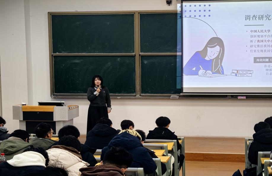 左宛玉老师以“携手同行,共赴前方”为主题,结合权威调研数据与真实案例,系统解析了当前学生心理健康现状。数据显示,我国大中小学生心理健康问题内化检出率达20%,外化检出率11.7%,涵盖焦虑、抑郁、睡眠障碍、自我伤害等多种情况,且近年来学生心理疾病确诊比例呈上升趋势。这一现状让在场学生骨干深刻认识到,心理健康工作既是责任所在,更是迫切需求。
