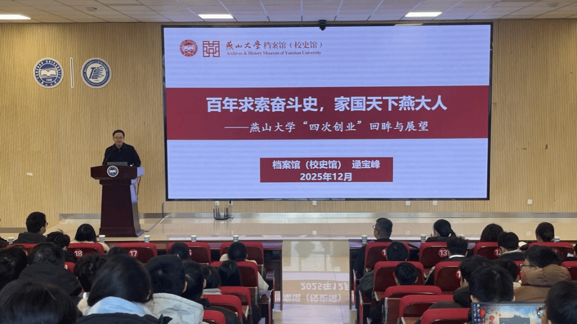 为传承燕大精神血脉、凝聚师生奋进力量,12月5日上午,燕山大学档案馆(校史馆)馆长逯宝峰为信息科学与工程学院师生作《百年求索奋斗史,家国天下燕大人——燕山大学“四次创业”回眸与展望》专题讲座。学院党委副书记李浩然主持,240余名师生齐聚,回溯校史历程,感悟燕大家国情怀。