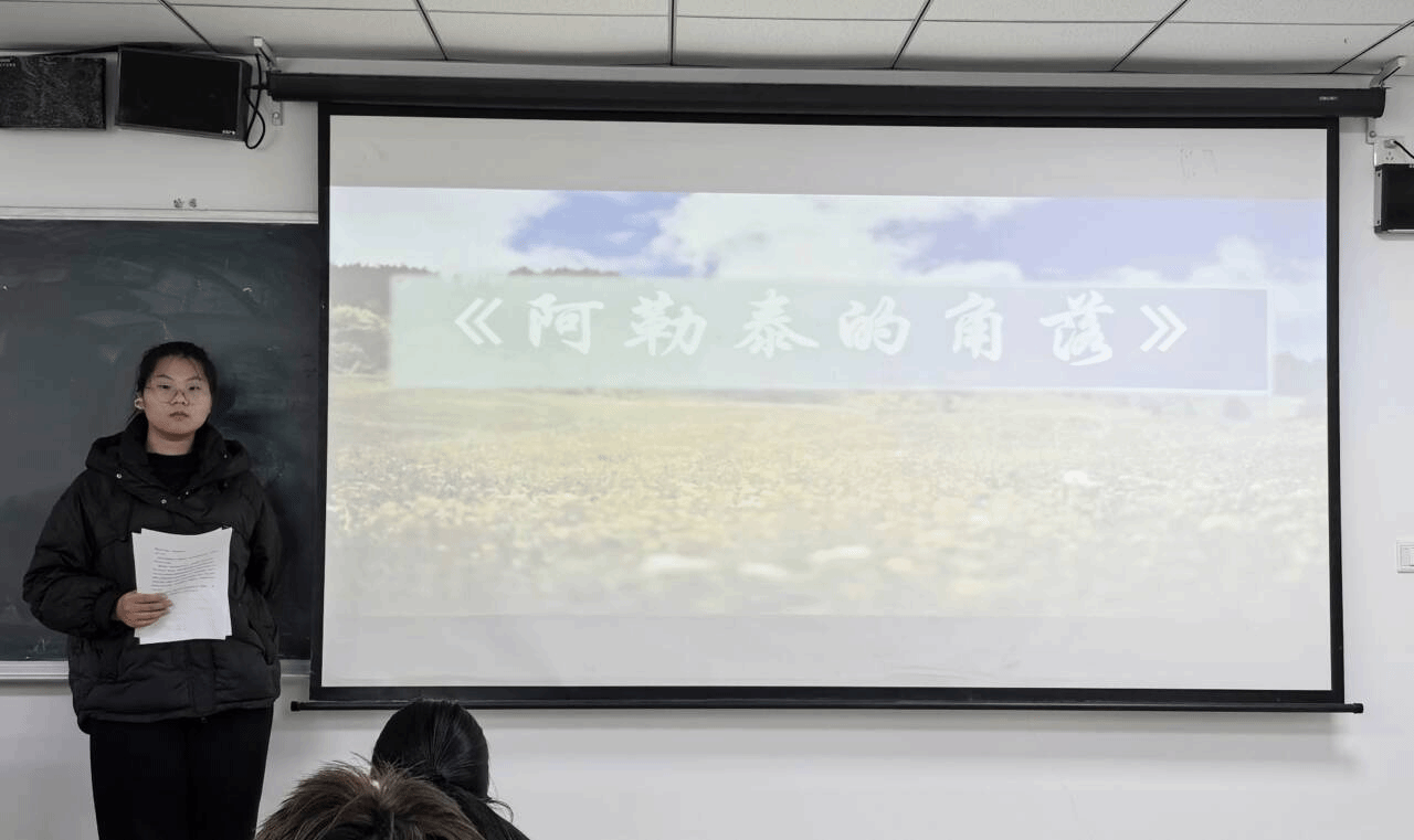 在个人分享环节,同学们从不同视角解读作品内涵,展现了丰富的思考与独特的感悟。有同学将目光聚焦于阿勒泰的自然之美,在书中描绘的蓝天白云、青山绿水间,体悟那份远离尘嚣的宁静与纯粹,感受大自然赋予生命的治愈力量;有同学深耕作品中的地域文化,透过文字细腻品味独属于阿勒泰的民俗风情与人文底蕴,领略不同文化背景下的生命姿态;更有同学从书中朴素的烟火日常里汲取力量,读懂了“简单生活也能开出温柔花朵”的人生哲理,被牧民们在艰苦环境中依然笑对风雪、坚韧不拔的生活态度深深打动,直言感受到了平凡生命中蕴藏的强大韧性。