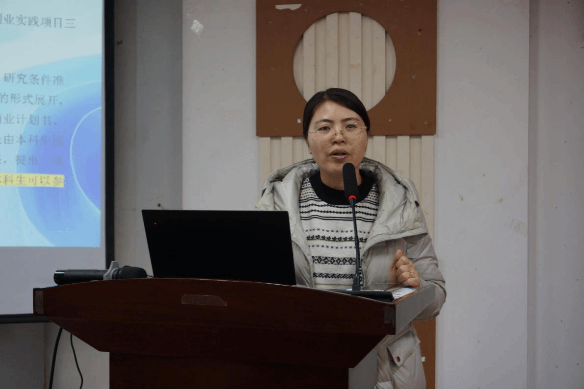 宣讲会上,王晴老师以清晰易懂的讲解,系统解读了大学生创新训练计划项目的核心内容。从创新训练、创业训练、创业实践三类项目的差异,到国家级、省级、校级三级立项的申报要点,再到选题方向、团队组建、材料准备等关键环节,王老师结合学院往年立项案例,细致拆解了申报条件中的核心要求,强调了团队成员5人标配、不得交叉申报等注意事项,为同学们扫清了申报路上的认知障碍。针对项目管理中的中期检查、经费报销、变更流程等实用内容,王老师也进行了重点说明,让同学们对项目全周期运行有了全面了解。
