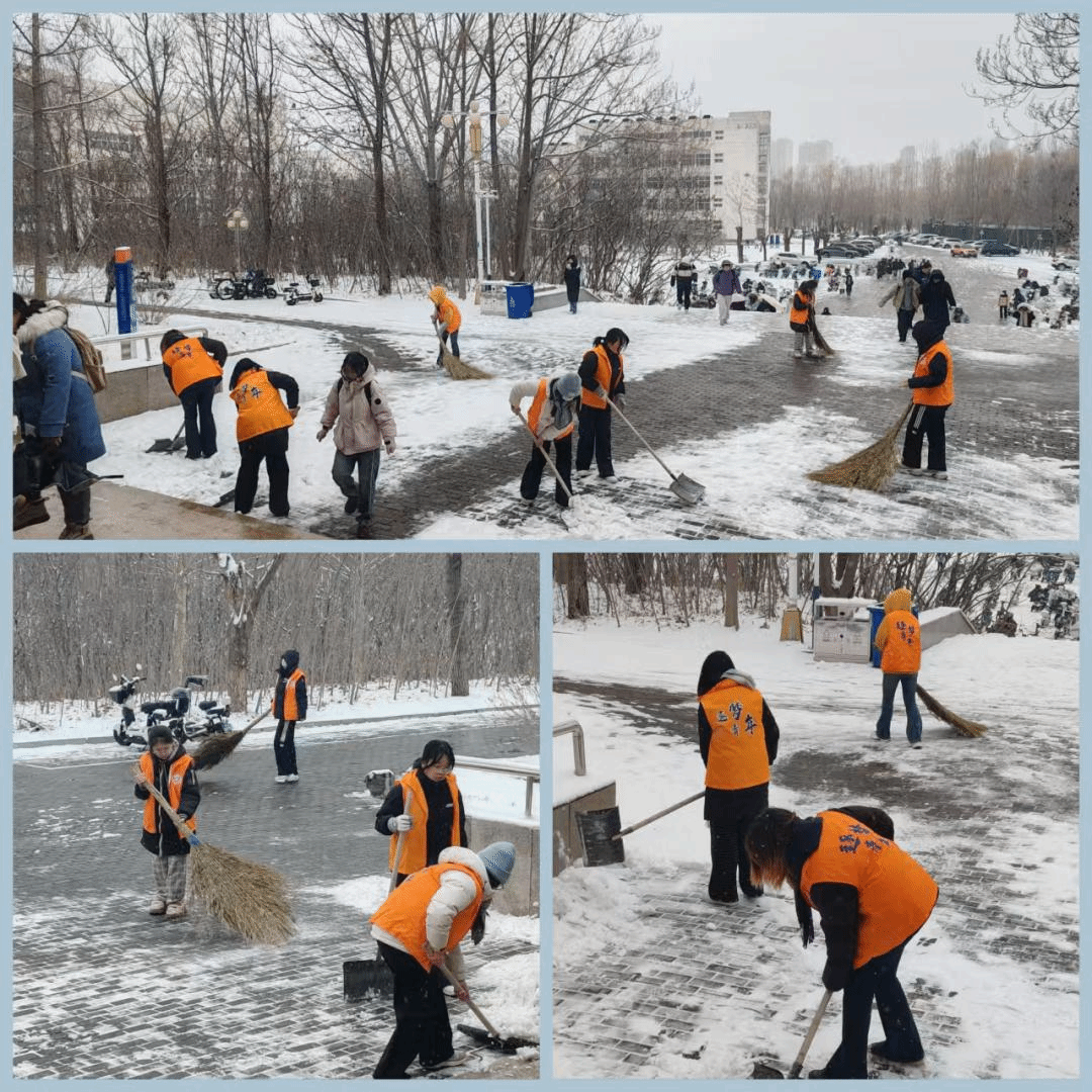 教学楼等重点区域,随处可见志愿者们忙碌的身影。经过志愿者的不懈努力,主要通道的积雪被清理干净,“露地面、路边净”的清扫标准落到实处,为师生出行开辟出一条条“暖心路”和“安全路”。