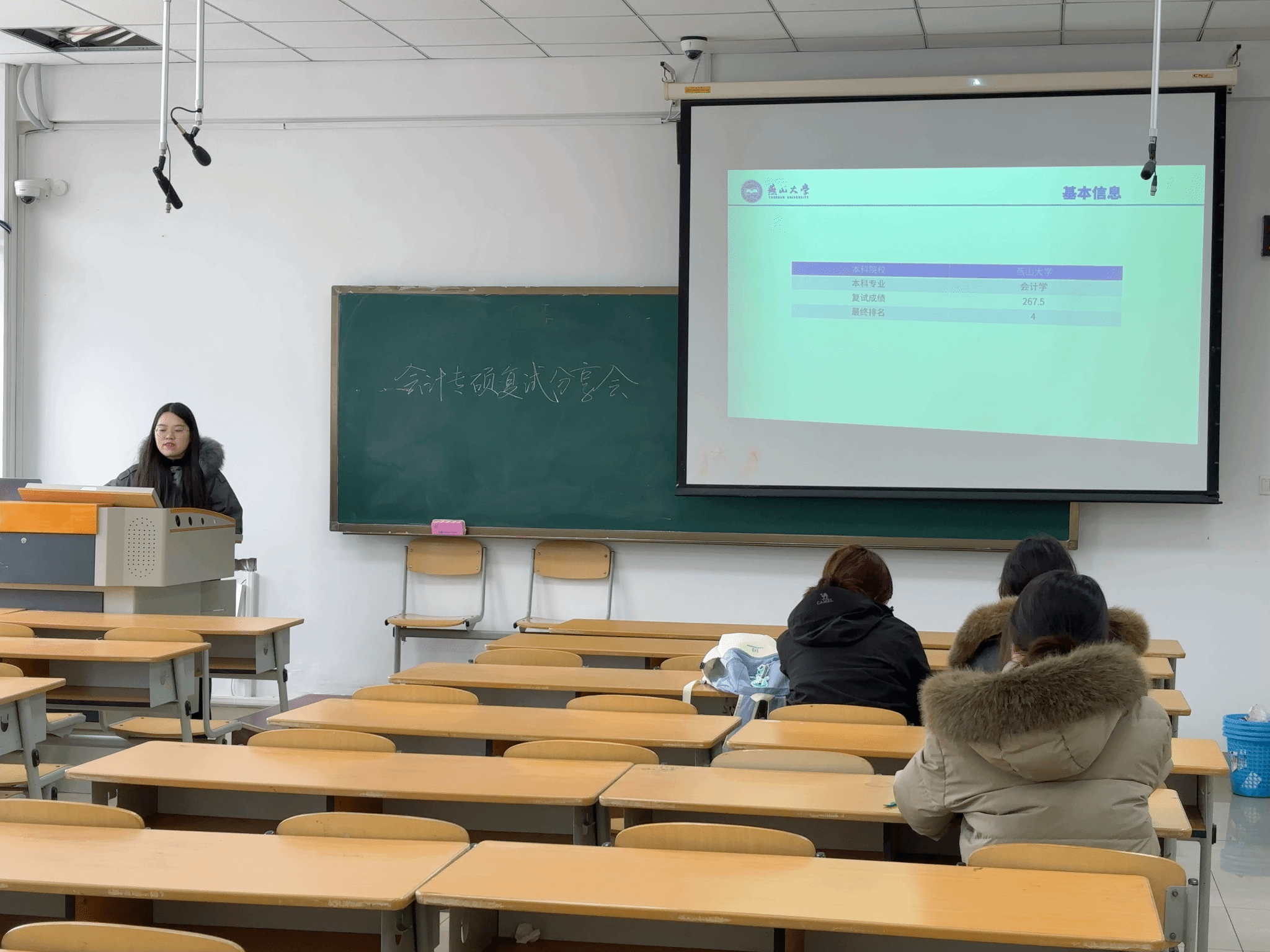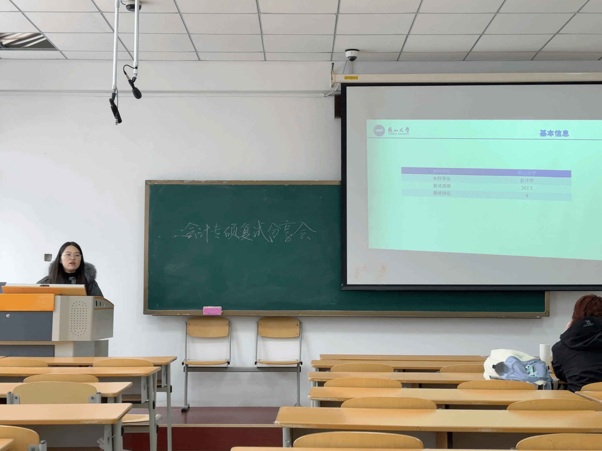 随后,史雅红同学围绕会计专硕复试至面试全流程带来系统化、全方位的经验分享。她从复试资料整理、专业课精准复习,到面试礼仪规范、常见问题应答逻辑,再到考前心态调整、现场突发情况应对,逐一梳理复试面试的关键细节,内容详实、实操性极强,精准覆盖了备考学子在后续阶段的核心需求,为同学们扫清了复试面试的备考盲区,提供了宝贵的实战经验参考。