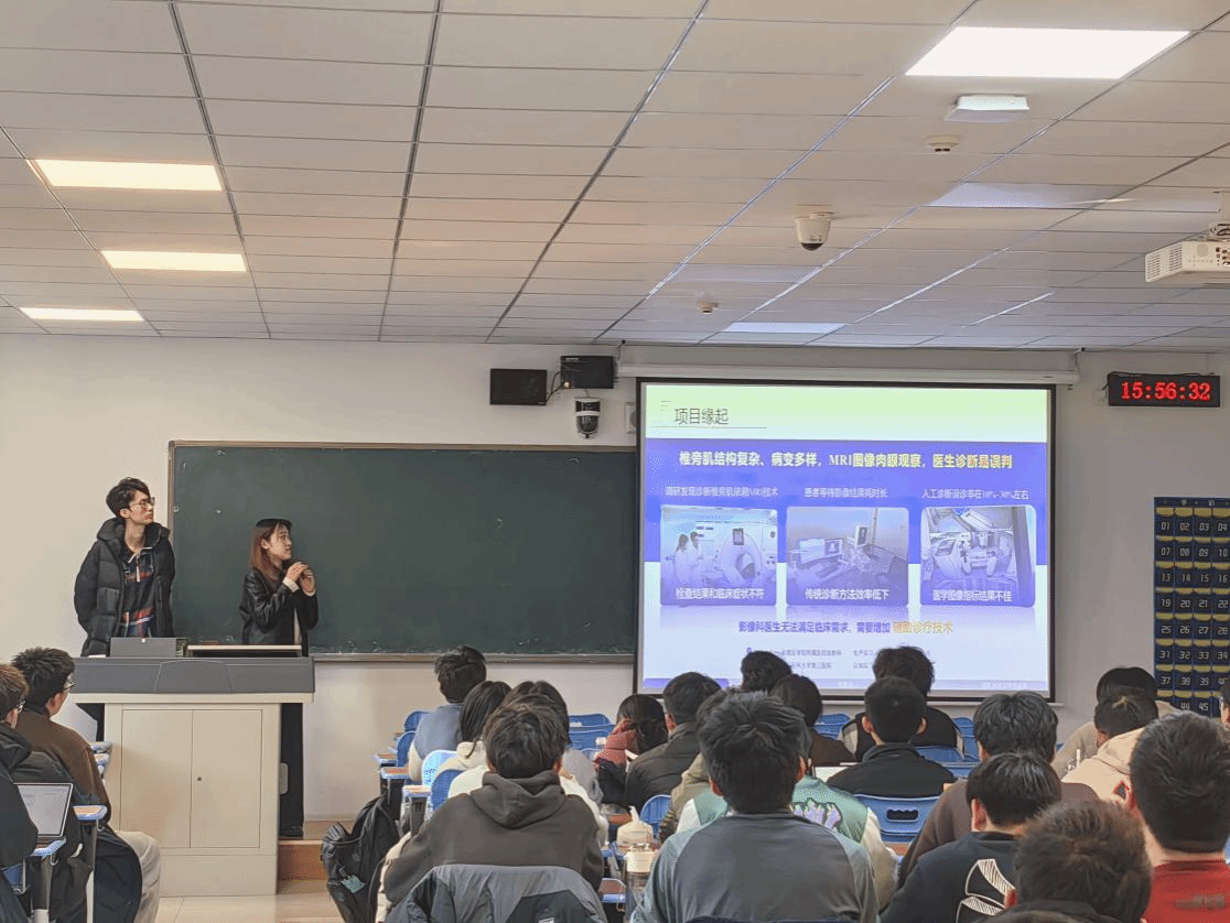 康世钊、曹知鱼进行大创项目现场路演展示,康世钊介绍自己的三年大创历程,分享项目孵化中的团队合作技巧,也介绍了大创申报书格式排版的细节要点,同时结合路演PPT,为同学们介绍项目展示的核心要求与实操方法。