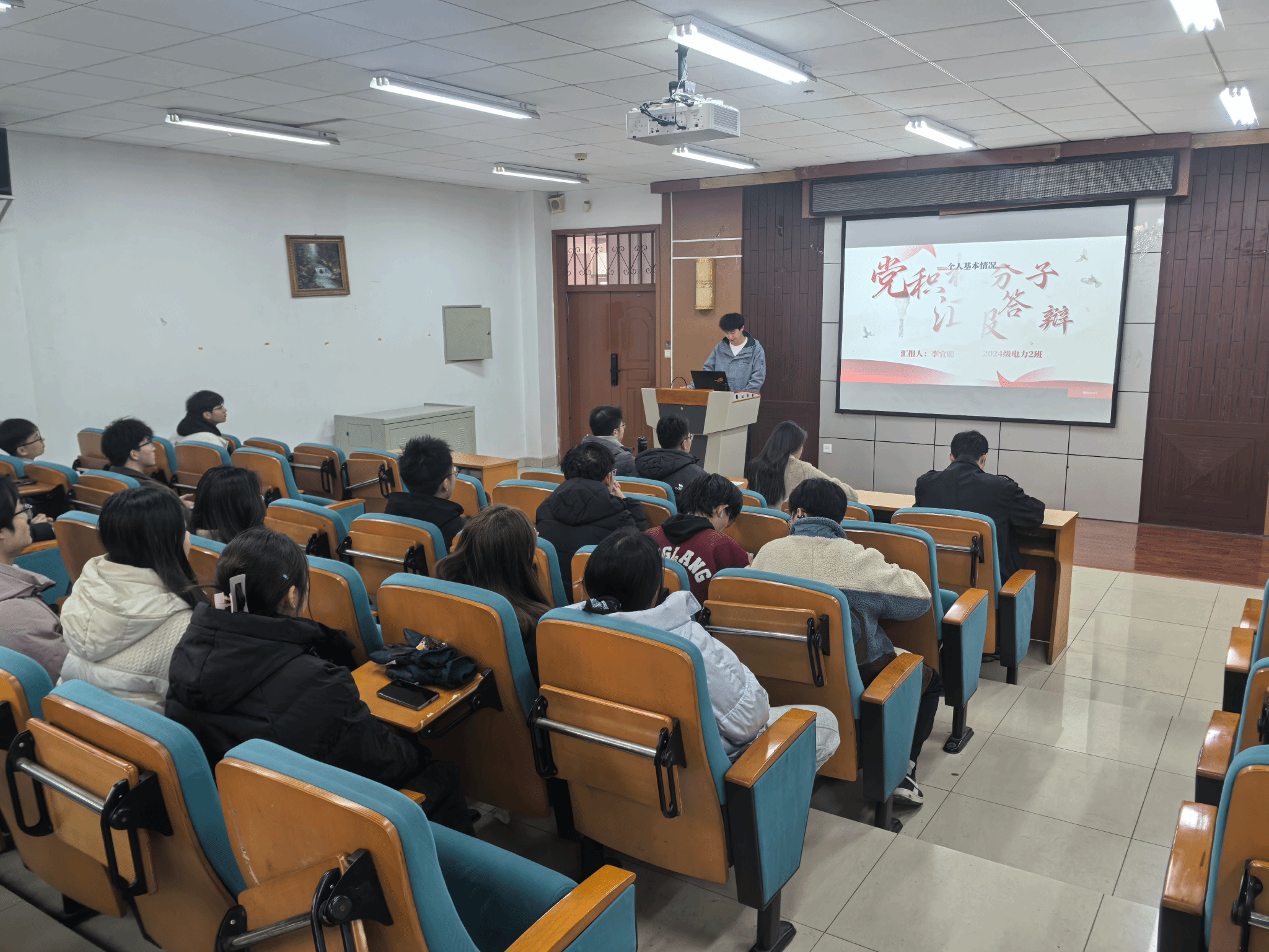 为进一步加强对入党积极分子的全过程培养与考察,提升党员发展工作的科学化、规范化水平,近日,电气工程学院本科生第一党支部举行了2026年春季学期入党积极分子汇报答辩会,全面检验积极分子在思想、学习、工作、生活等方面的综合表现。本次答辩由党支部书记赵雨桐主持,支部委员、高年级学生党员代表及培养联系人组成评审小组,支部全体积极分子参与答辩,入党申请人观摩学习。