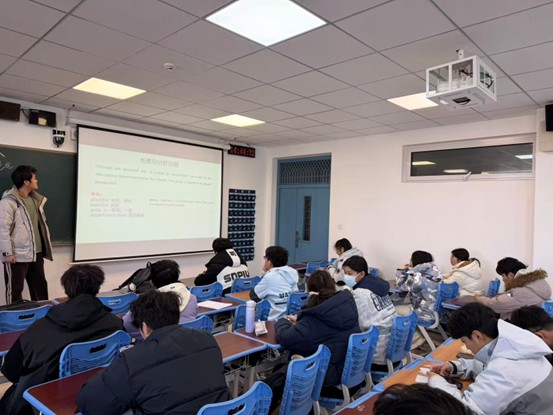 分享会上,邹泽仕结合自身经验,分层讲解四六级与大英赛。四六级部分聚焦听力词汇积累、阅读长难句拆解,梳理翻译与写作的高分句型及语法易错点;大英赛部分剖析竞赛题型与考查逻辑,总结词汇高效记忆方法与阅读快速定位技巧。通过例题拆解,使语法词汇更易理解。除基础知识与解题方法外,邹泽仕还分享了答题时间规划、卷面规范书写、听力漏听及难题临场应对等应试技巧。同学们踊跃提问,他逐一解答,扫清备考障碍。