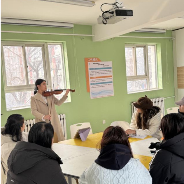 音乐疗愈作为一种非语言的情感表达方式,通过旋律、节奏与和声的引导,帮助参与者放松身心、释放情绪。活动现场,主讲人首先围绕音乐疗愈的基本理念与实践方式进行讲解,带领同学们了解如何通过音乐与自我对话、调节情绪。随后,在小提琴悠扬的旋律中,同学们静静欣赏,沉浸在音符构建的情感世界中。琴声时而婉转,时而激昂,仿佛在与每一位倾听者进行无声的交流。